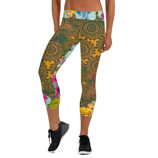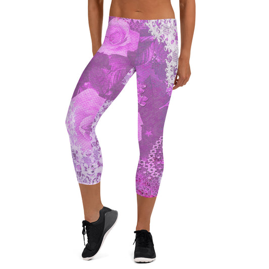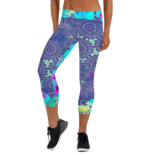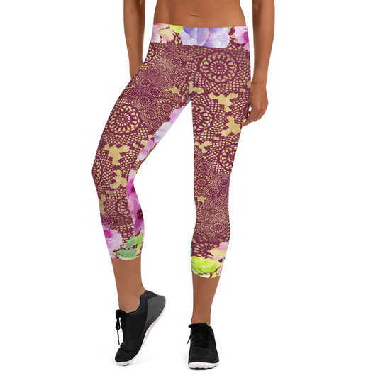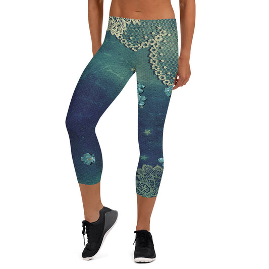 Victorian lace capri Leggings, size XS to XL, Design 15