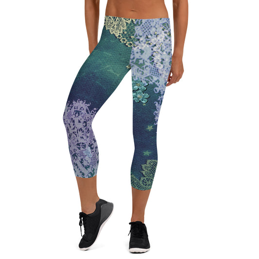 Victorian lace capri Leggings, size XS to XL, Design 10