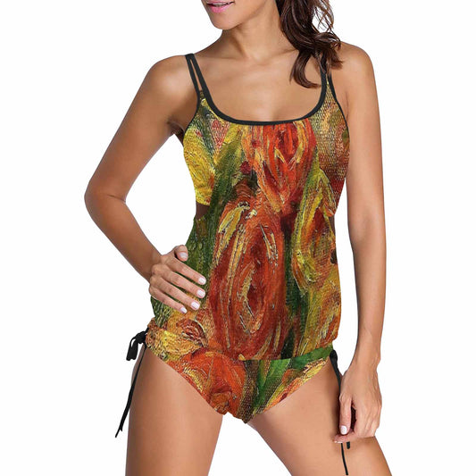 Vintage floral,cover belly tankini beach wear, swim wear, Design 02