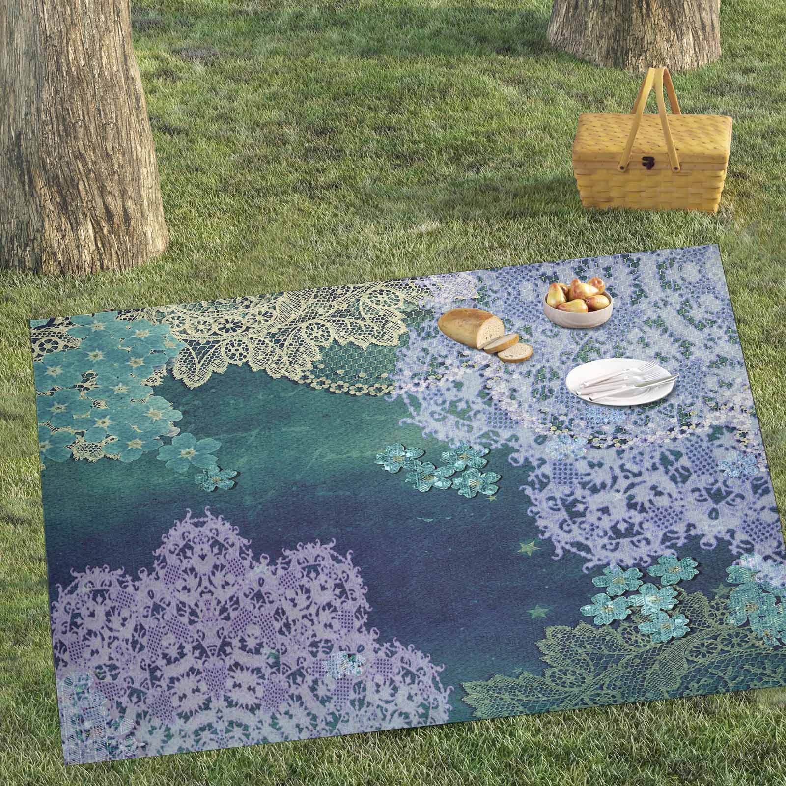 Victorian lace print waterproof picnic mat, 81 x 55in, design 05
