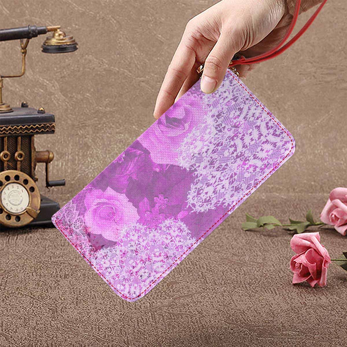 Victorian lace print womens wallet, clutch purse, red trim, design 03