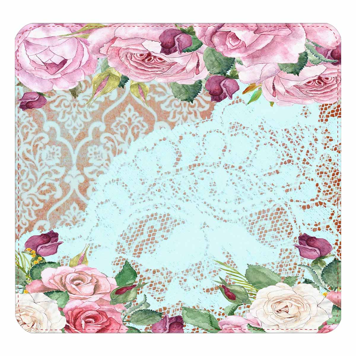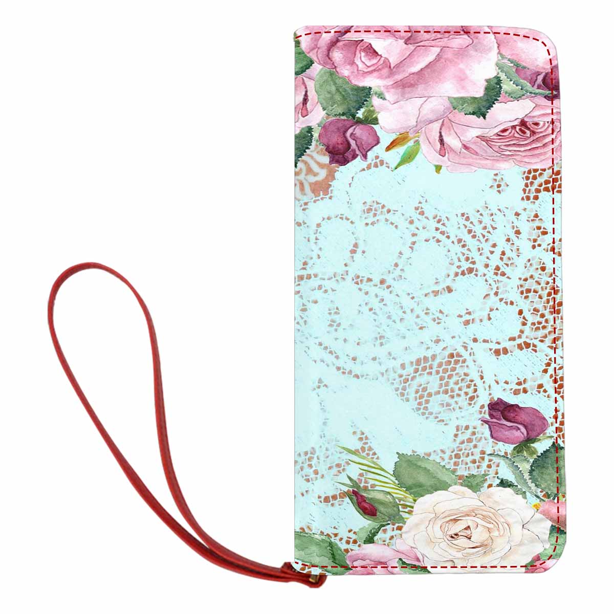 Victorian lace print womens wallet, clutch purse, red trim, design 24