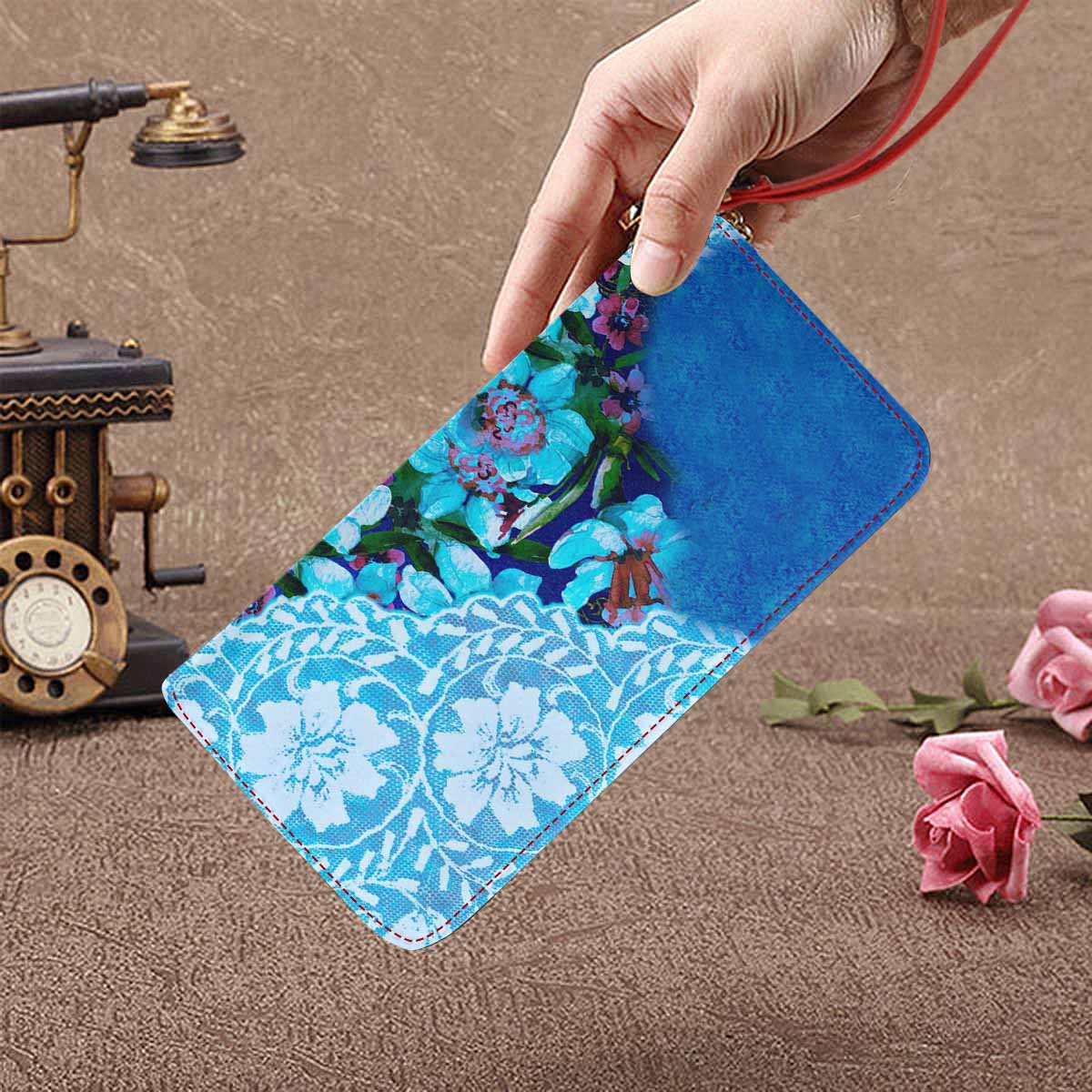 Victorian lace print womens wallet, clutch purse, red trim, design 49