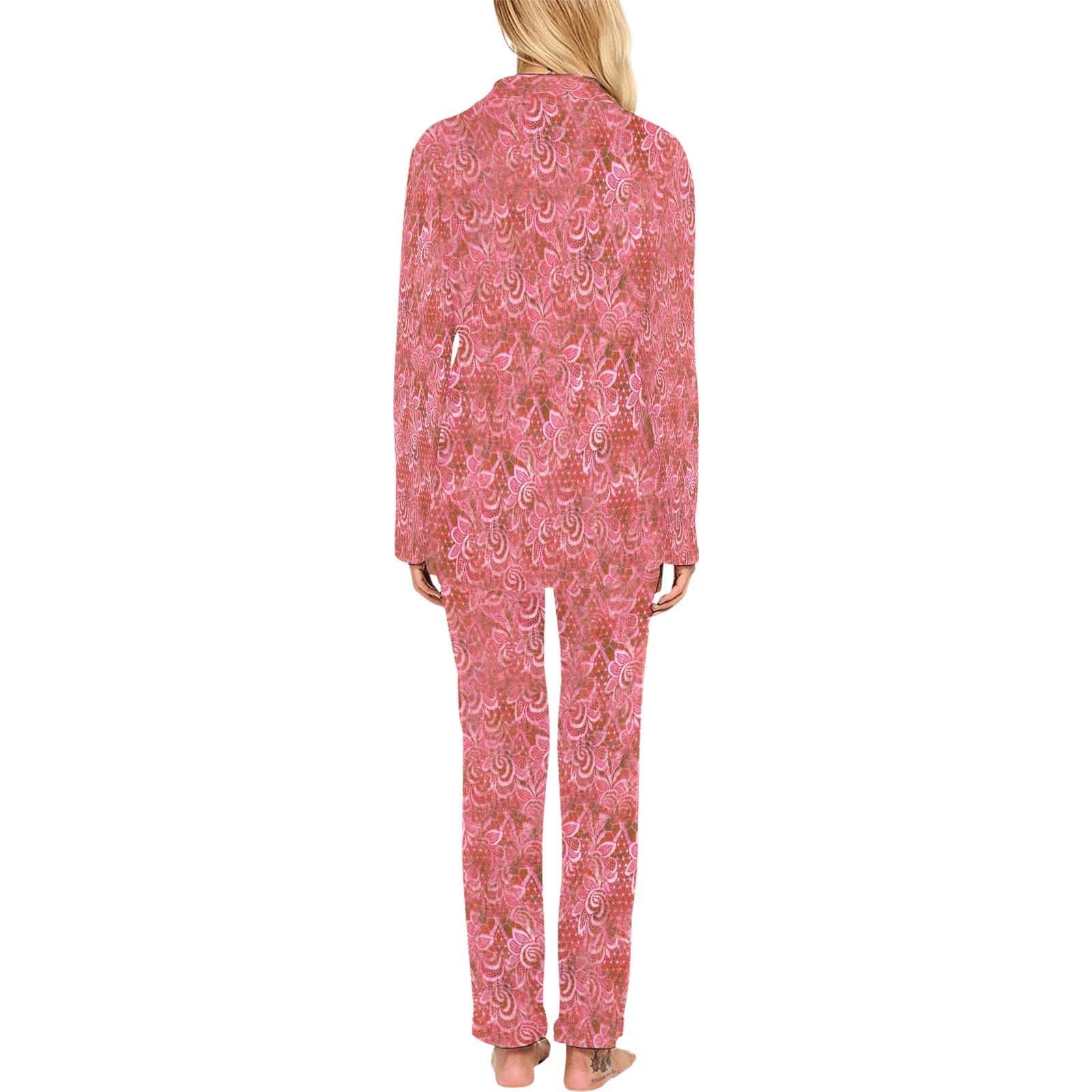 Victorian printed lace pajama set, design 33 Women's Long Pajama Set (Sets 02)
