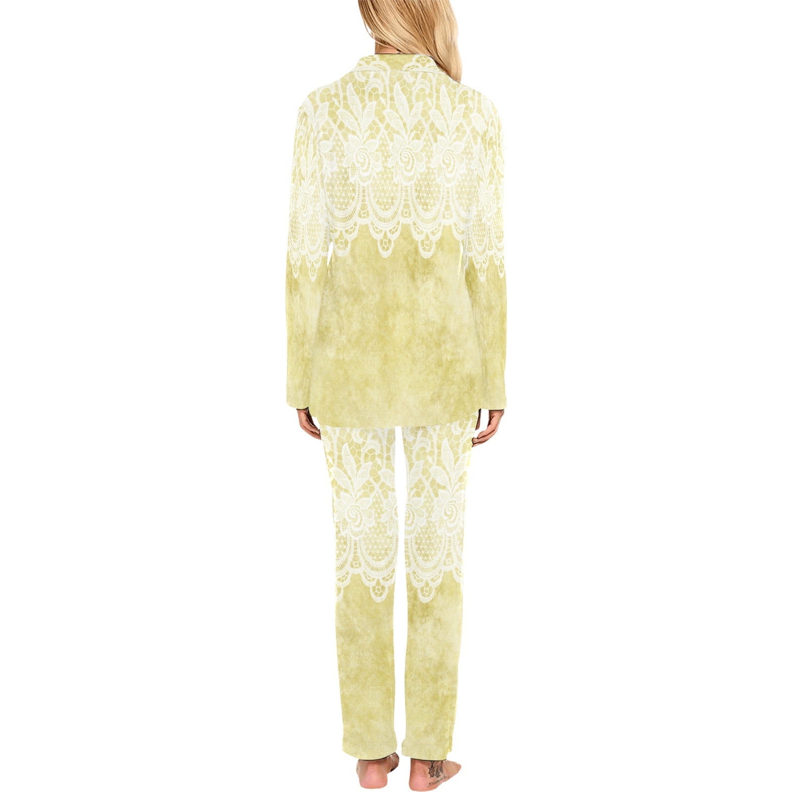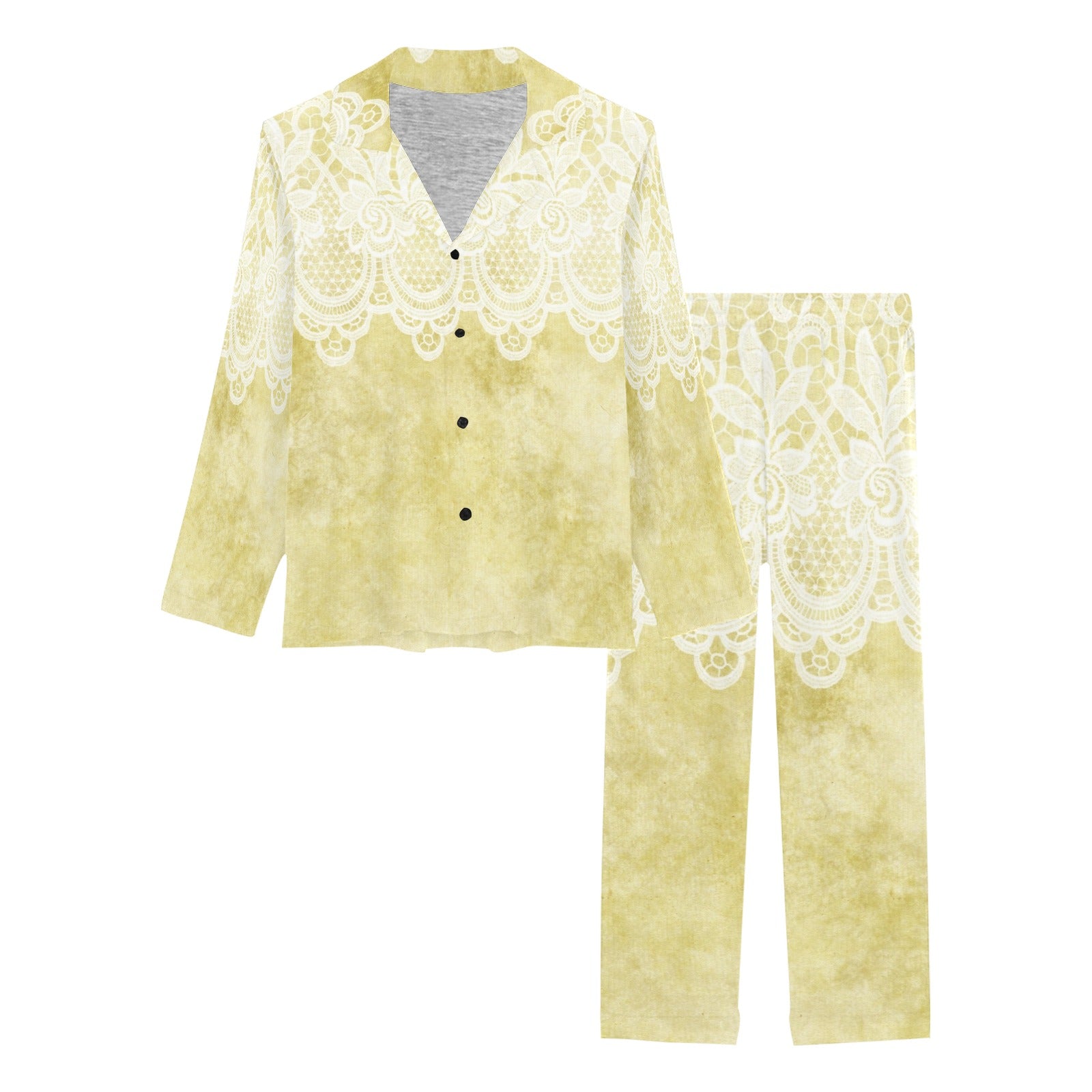 Victorian printed lace pajama set, design 44 Women's Long Pajama Set (Sets 02)