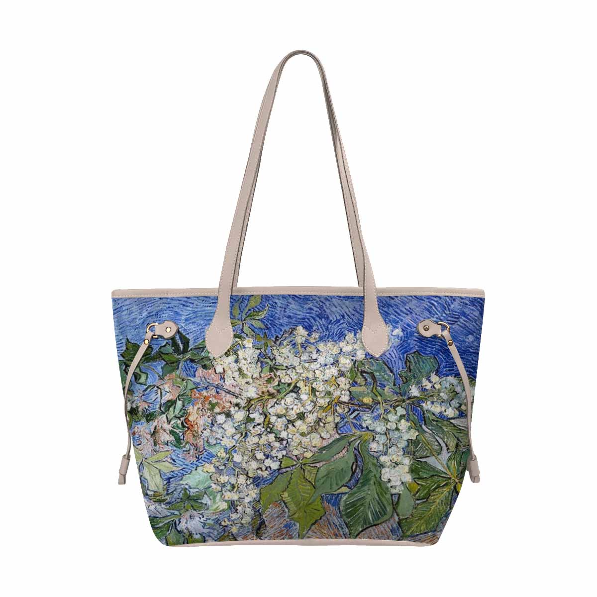 Vintage Floral Handbag, Classic Handbag, Mod 1695361 Design 04, BEIGE/TAN TRIM