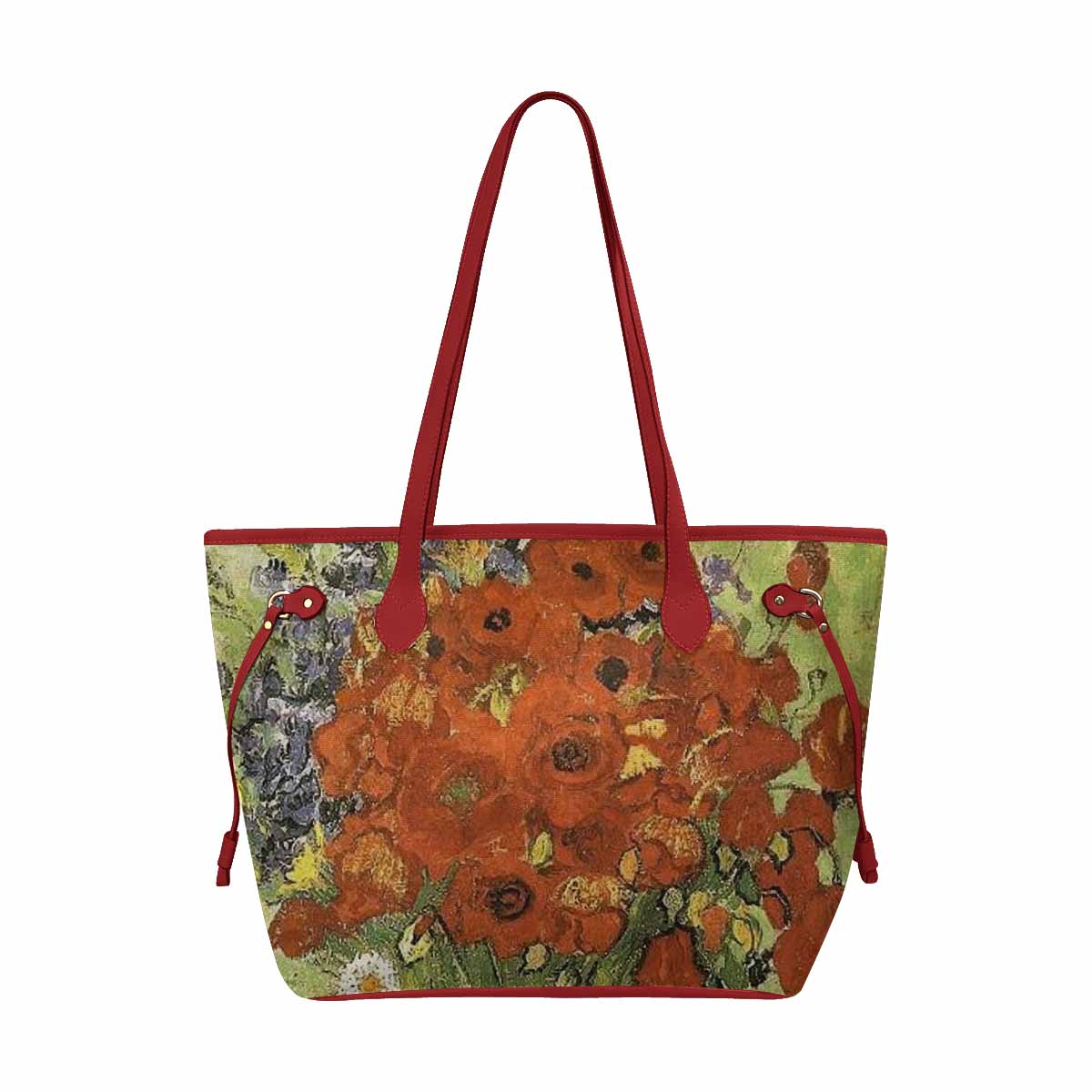Vintage Floral Handbag, Classic Handbag, Mod 1695361 Design 56 RED TRIM