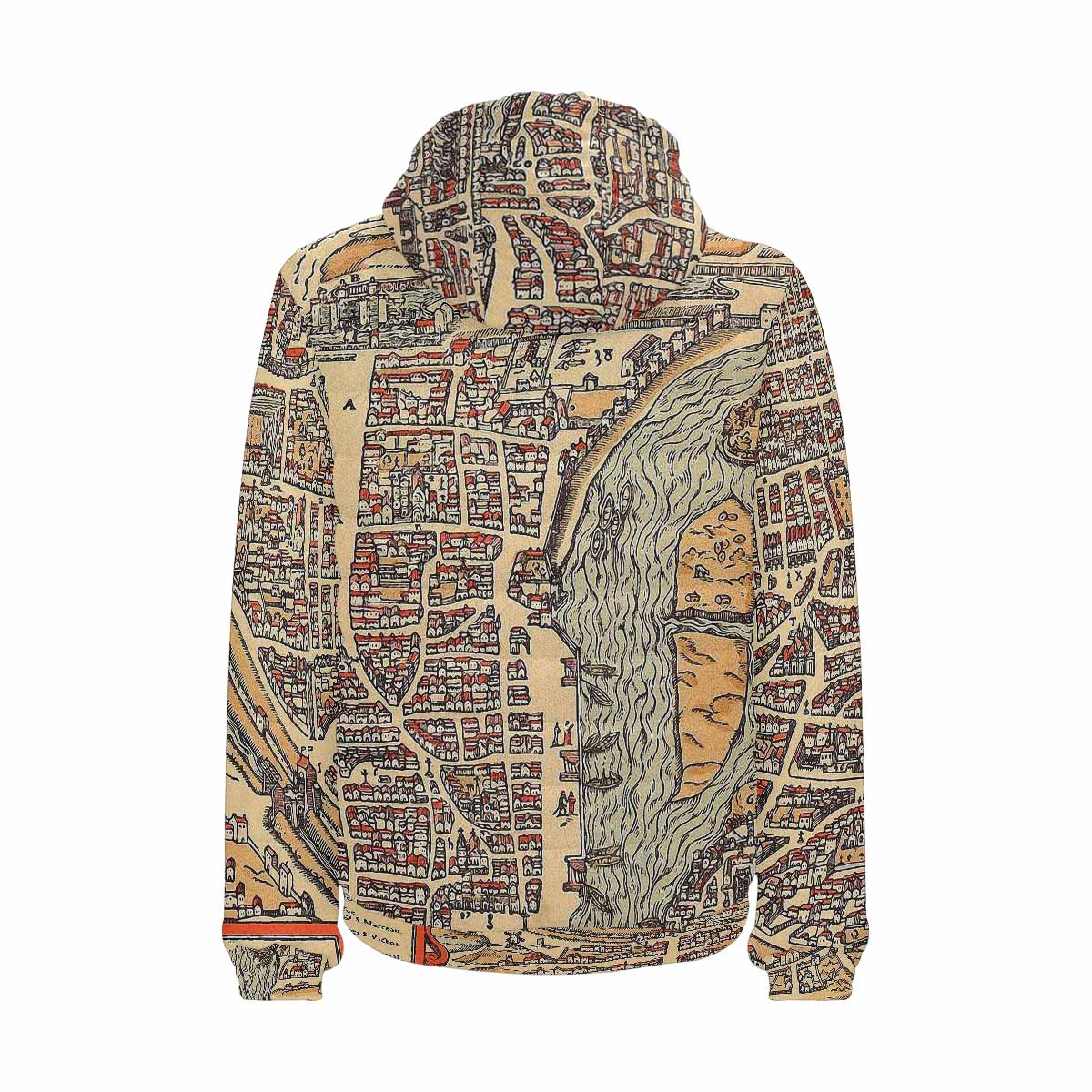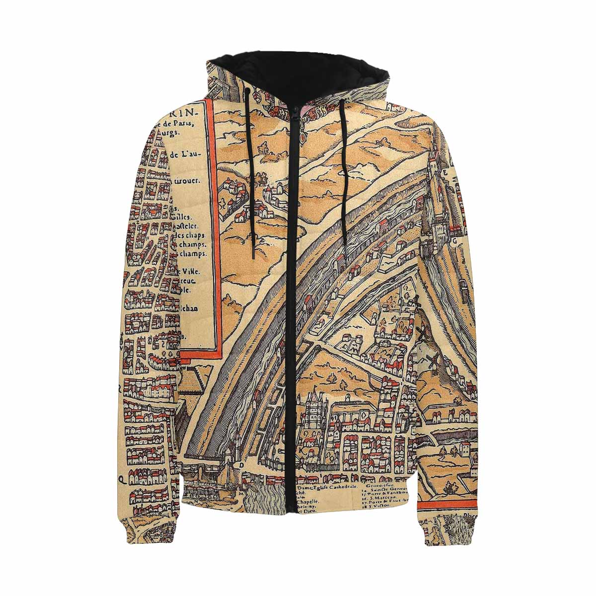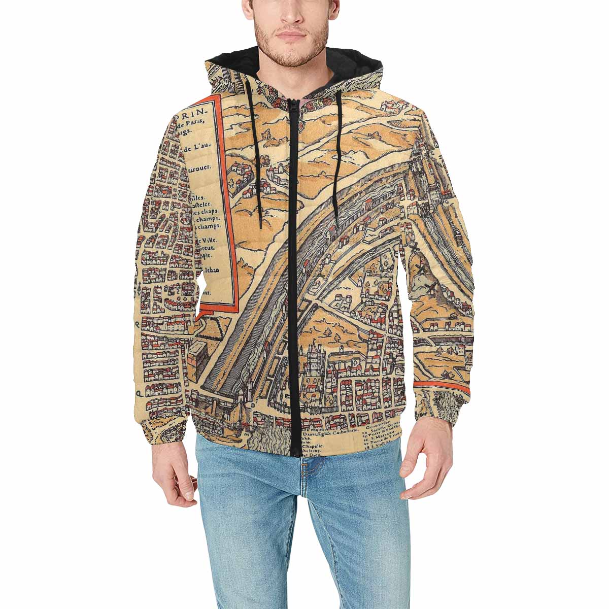 Antique Map design, mens lightweight, warm, quilted hooded bomber jacket, design, 49