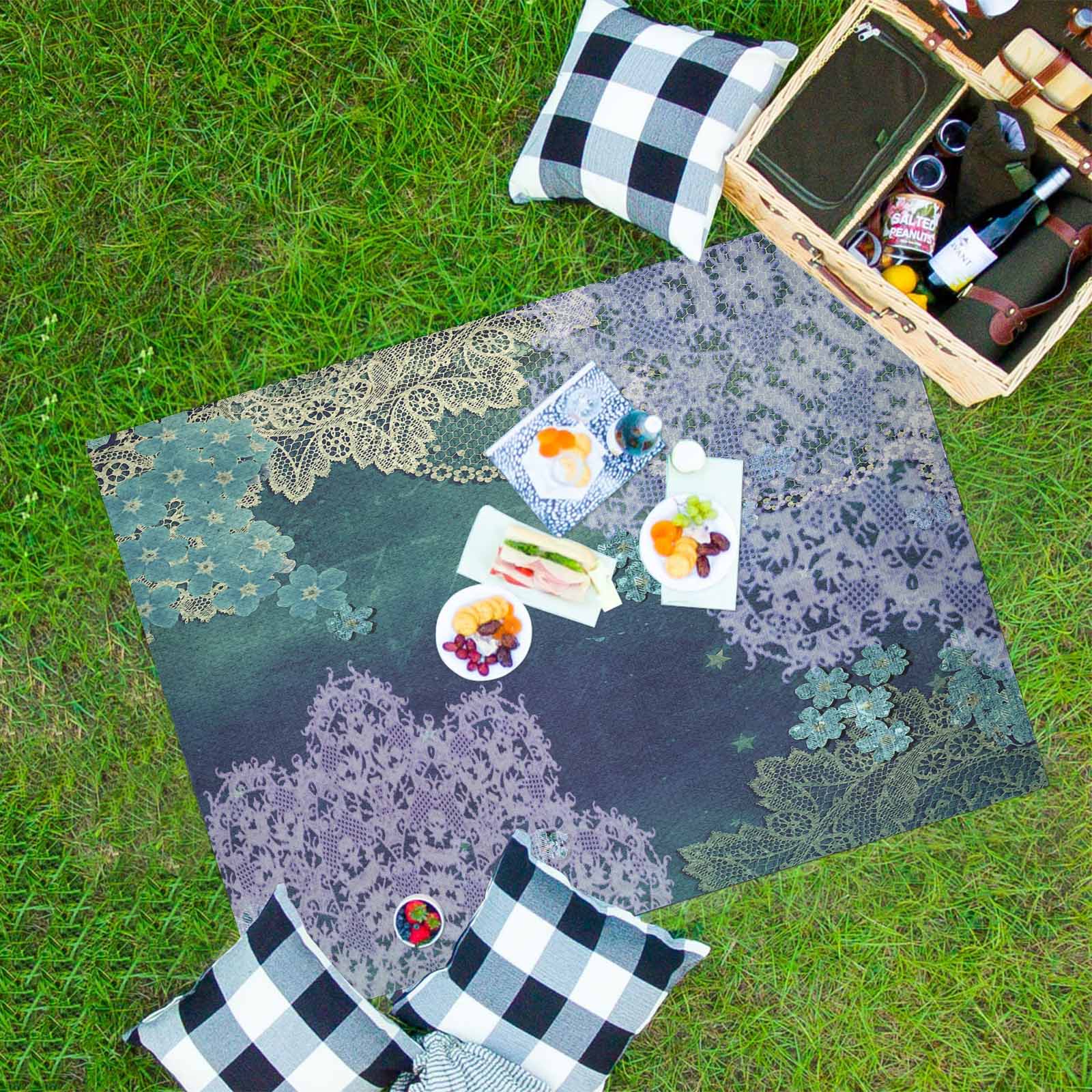 Victorian lace print waterproof picnic mat, 69 x 55in, design 05
