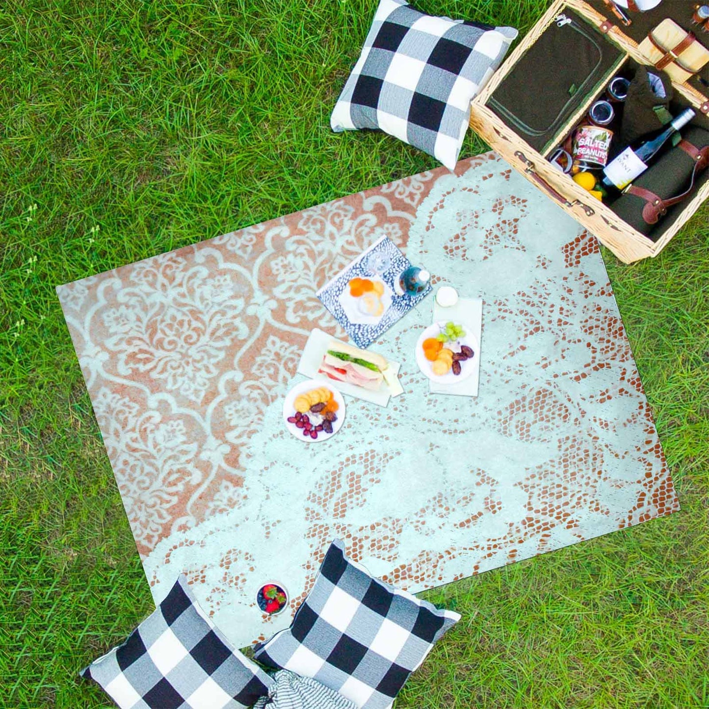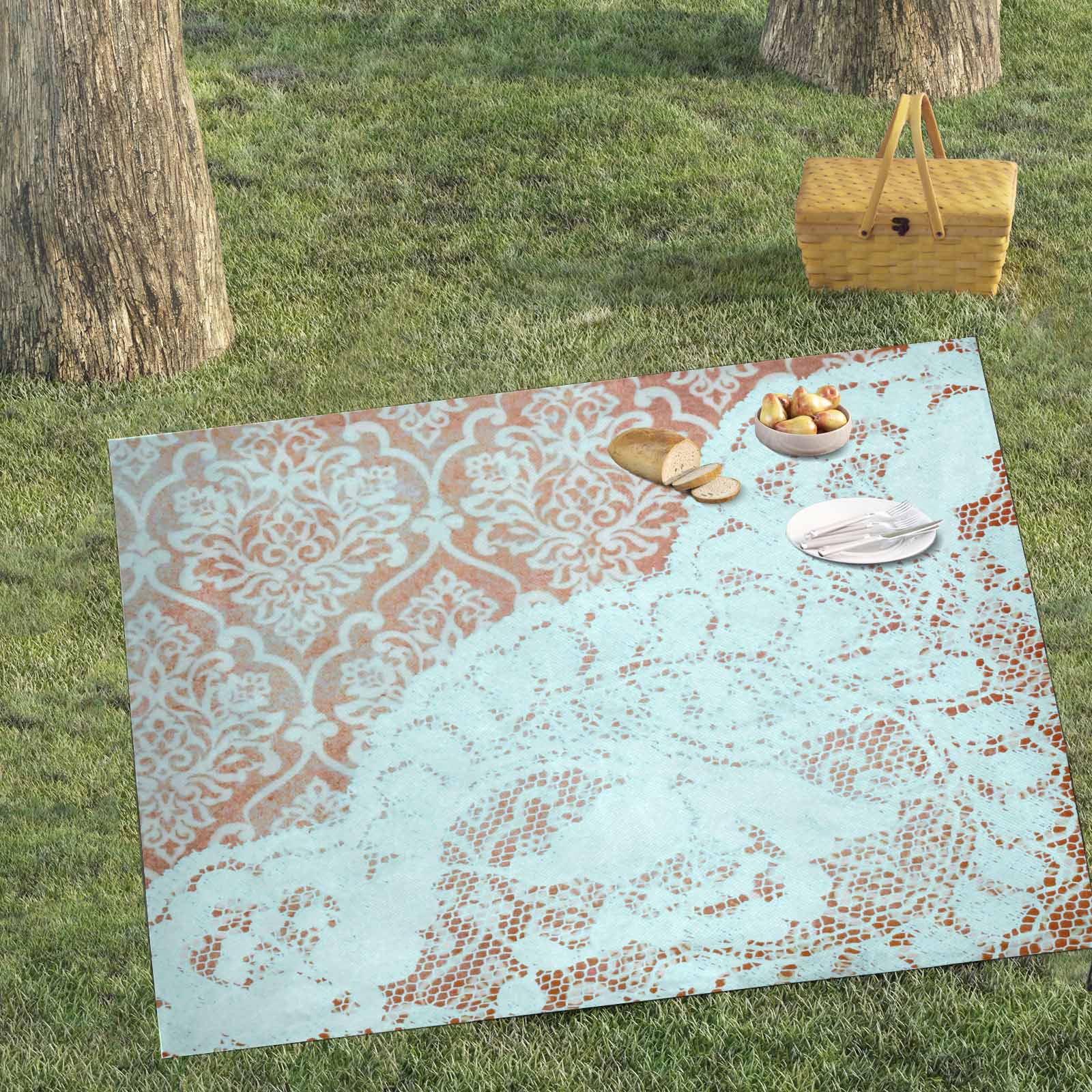 Victorian lace print waterproof picnic mat, 69 x 55in, design 23