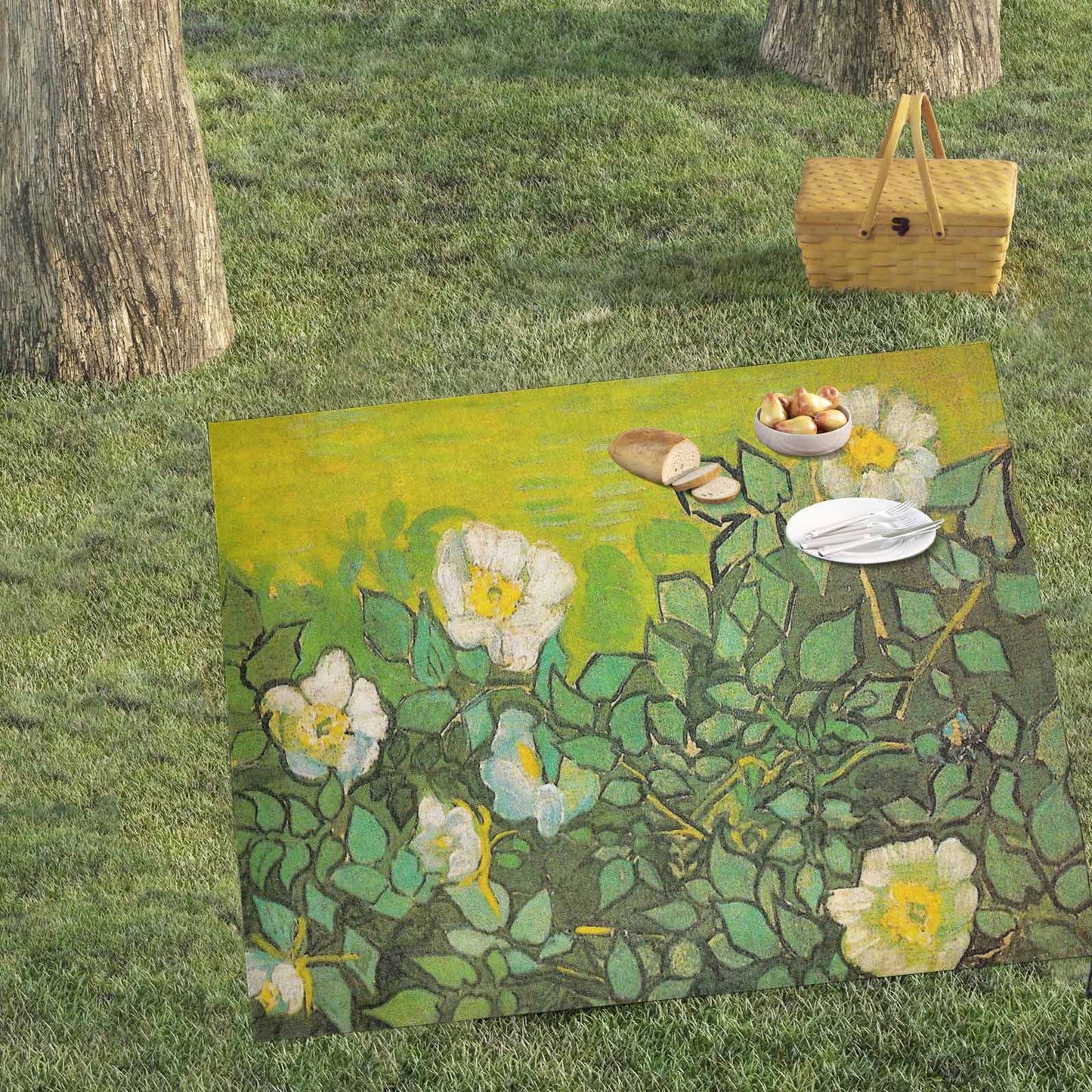 Vintage Floral waterproof picnic mat, 61 x 55in, Design 01