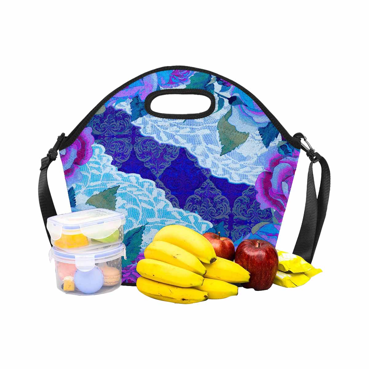 Victorian lace print insulated lunch bag, design 20