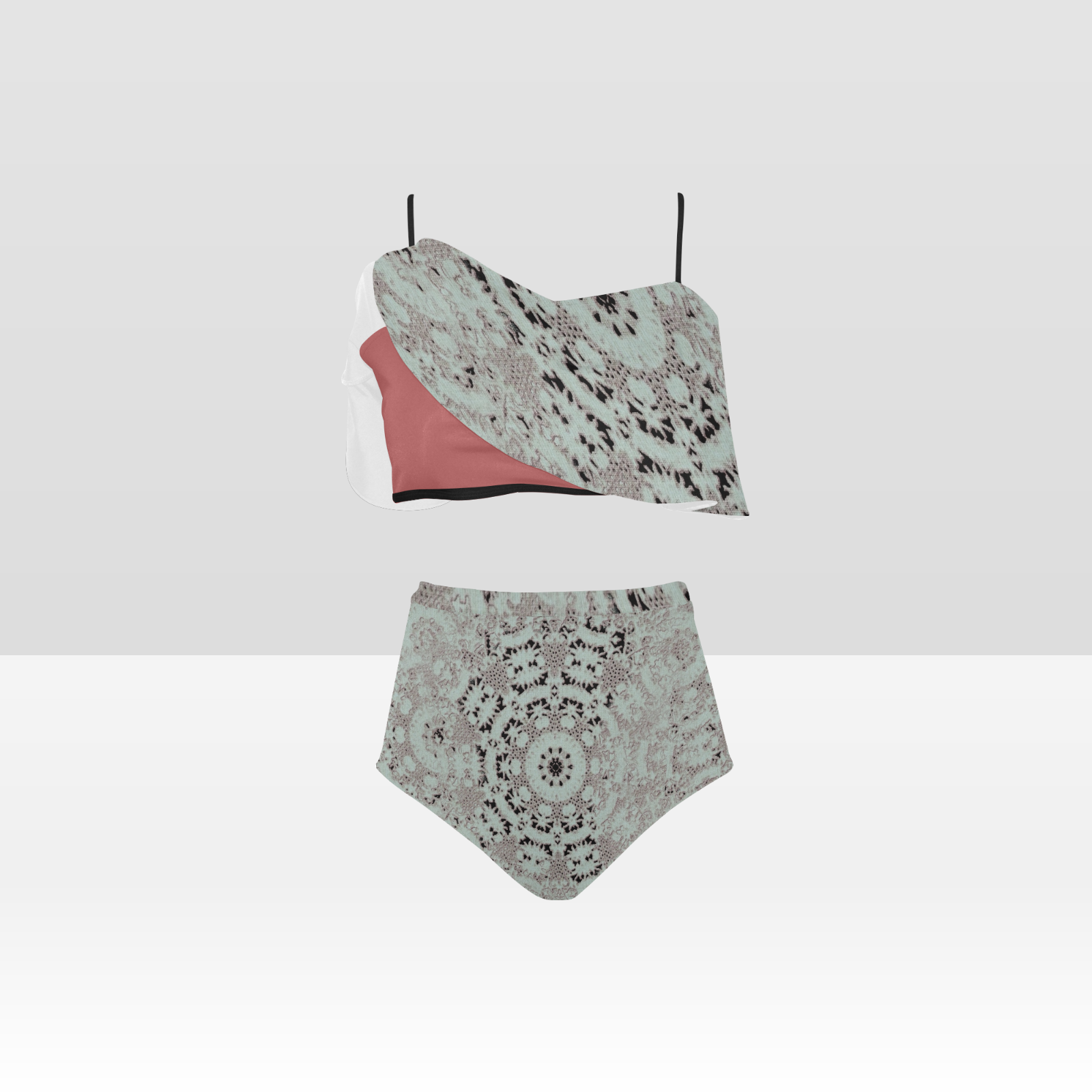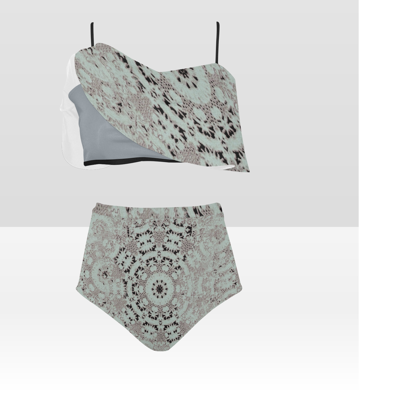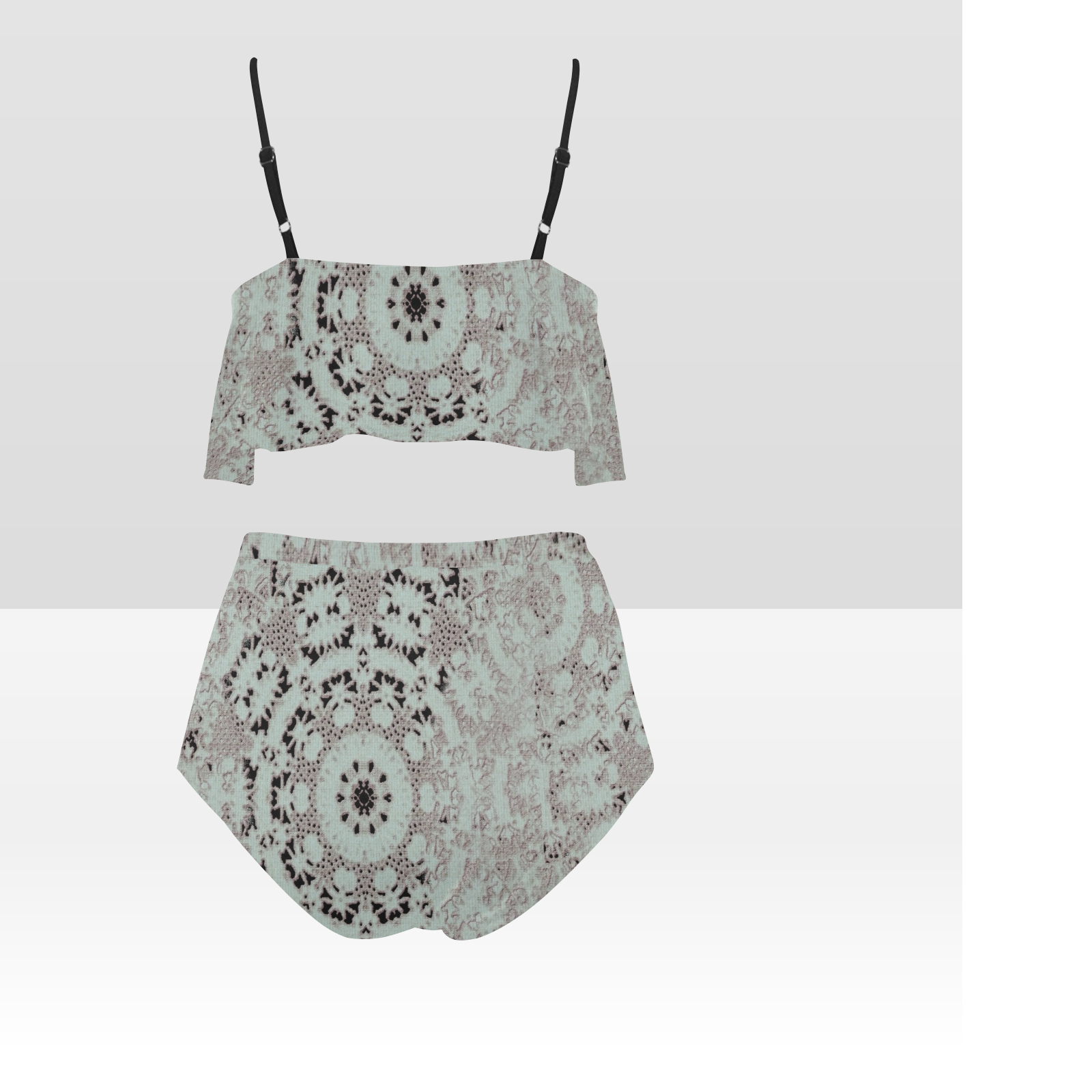 Flounce & Ruffle Bikini swimwear, Printed Victorian lace, Design 51 High Waisted Ruffle Bikini Set-A/B/C (Model SO3)