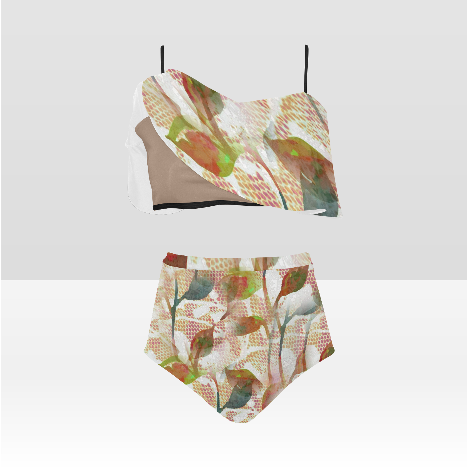 Flounce & Ruffle Bikini swimwear, Printed Victorian lace, Design 52 High Waisted Ruffle Bikini Set-A/B/C (Model SO3)