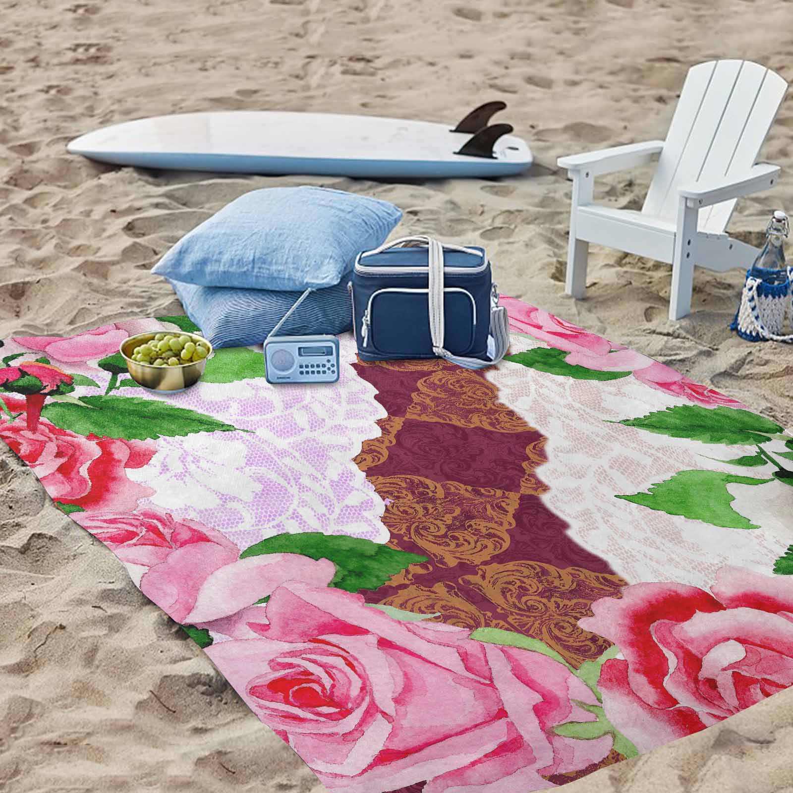 Victorian lace print waterproof picnic mat, 81 x 55in, design 19