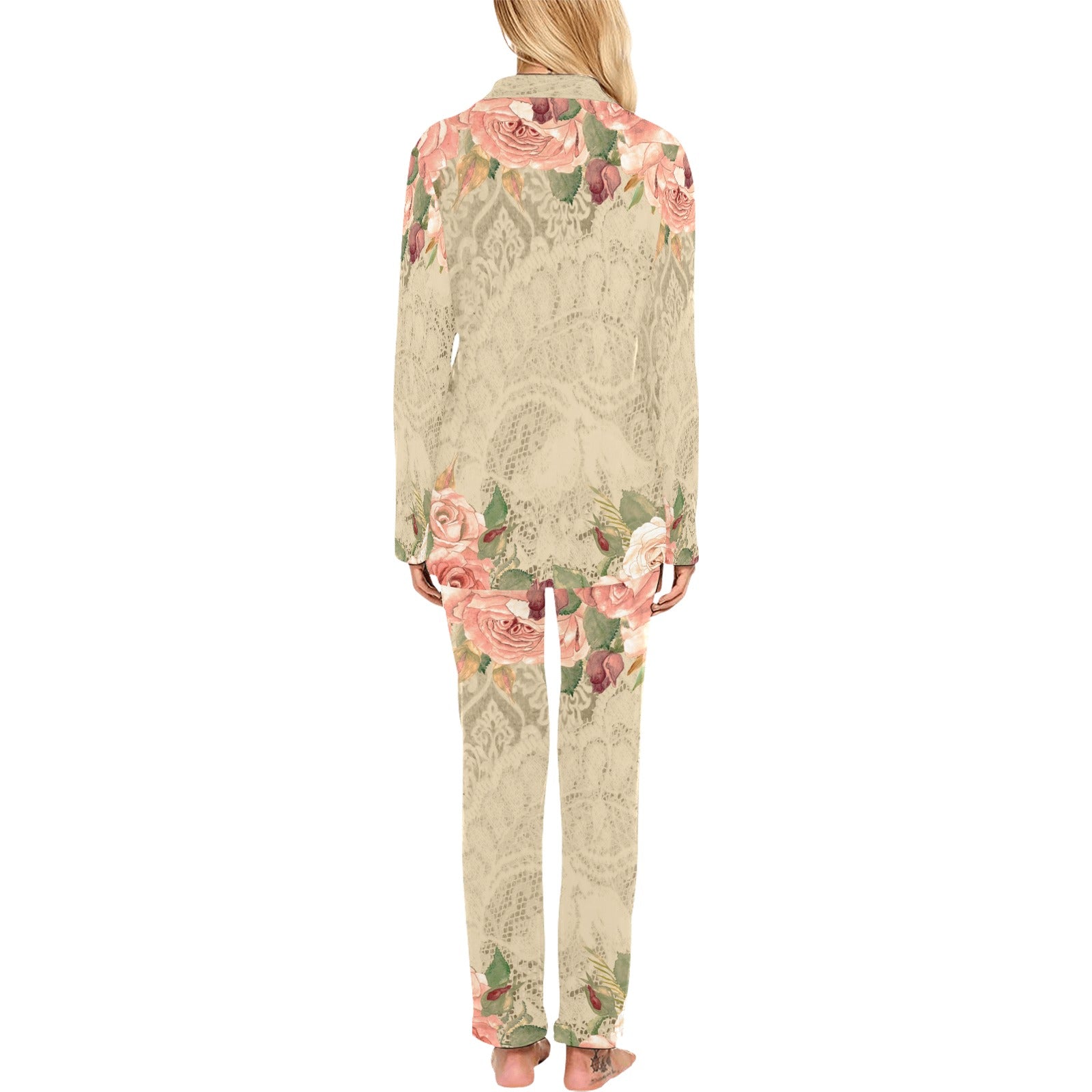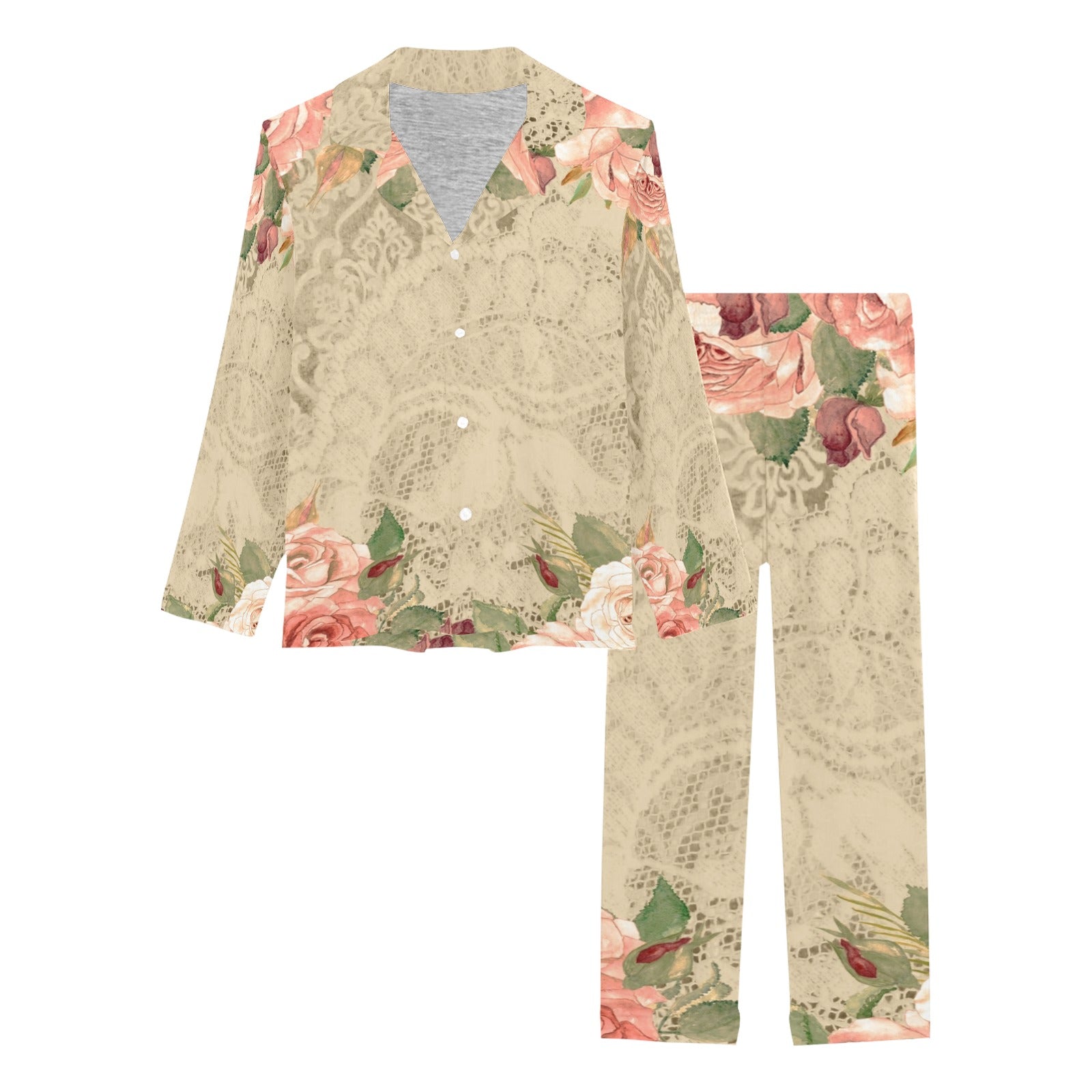 Victorian printed lace pajama set, design 25 Women's Long Pajama Set (Sets 02)