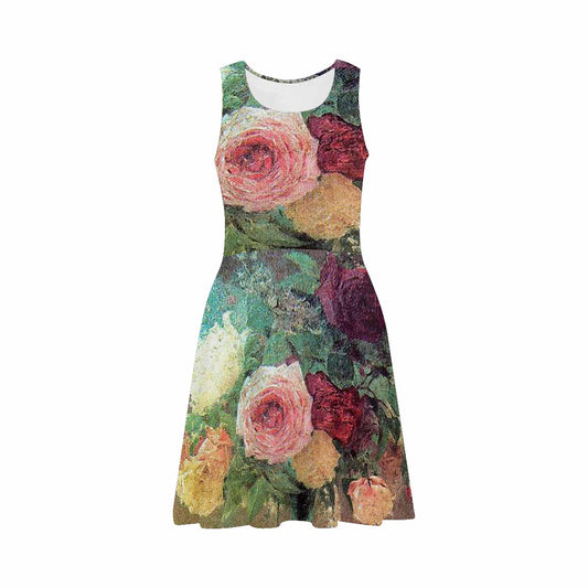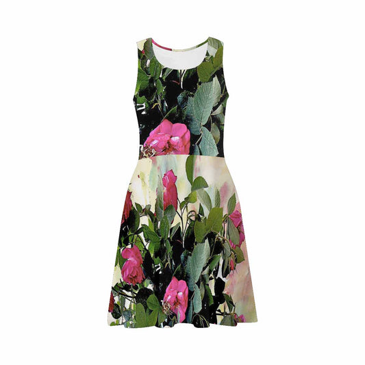 Vintage floral short summer flare dress, XS to 3XL plus size, model D09534 Design 20