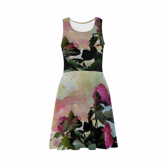 Vintage floral short summer flare dress, XS to 3XL plus size, model D09534 Design 22x