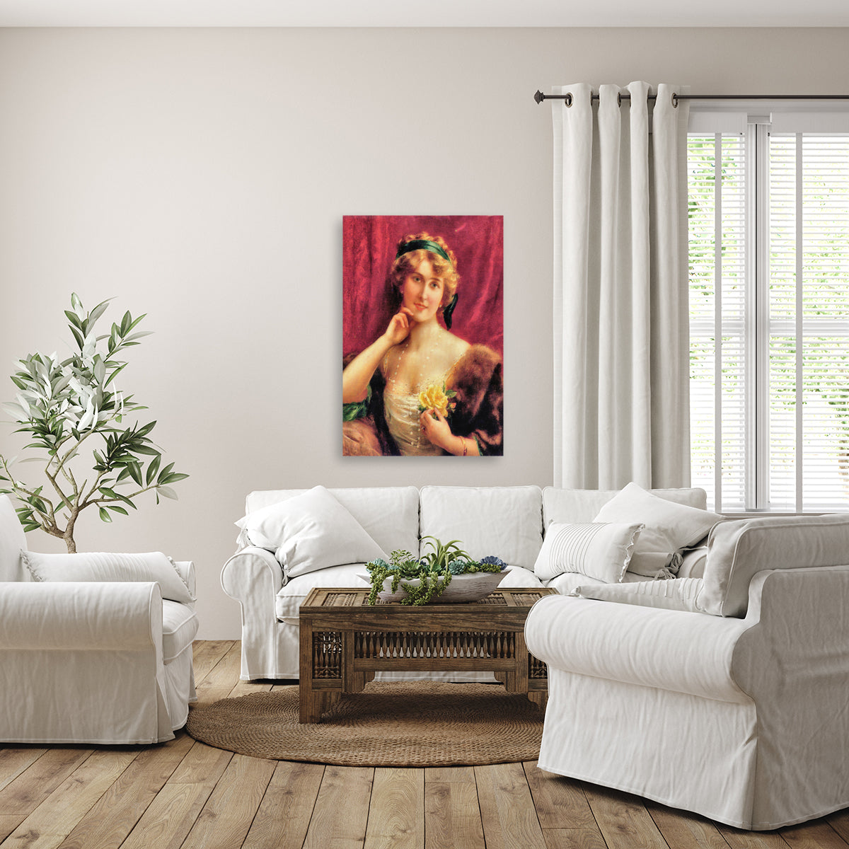 Victorian lady fine art print Elegant Lady with a YELLOW Roses