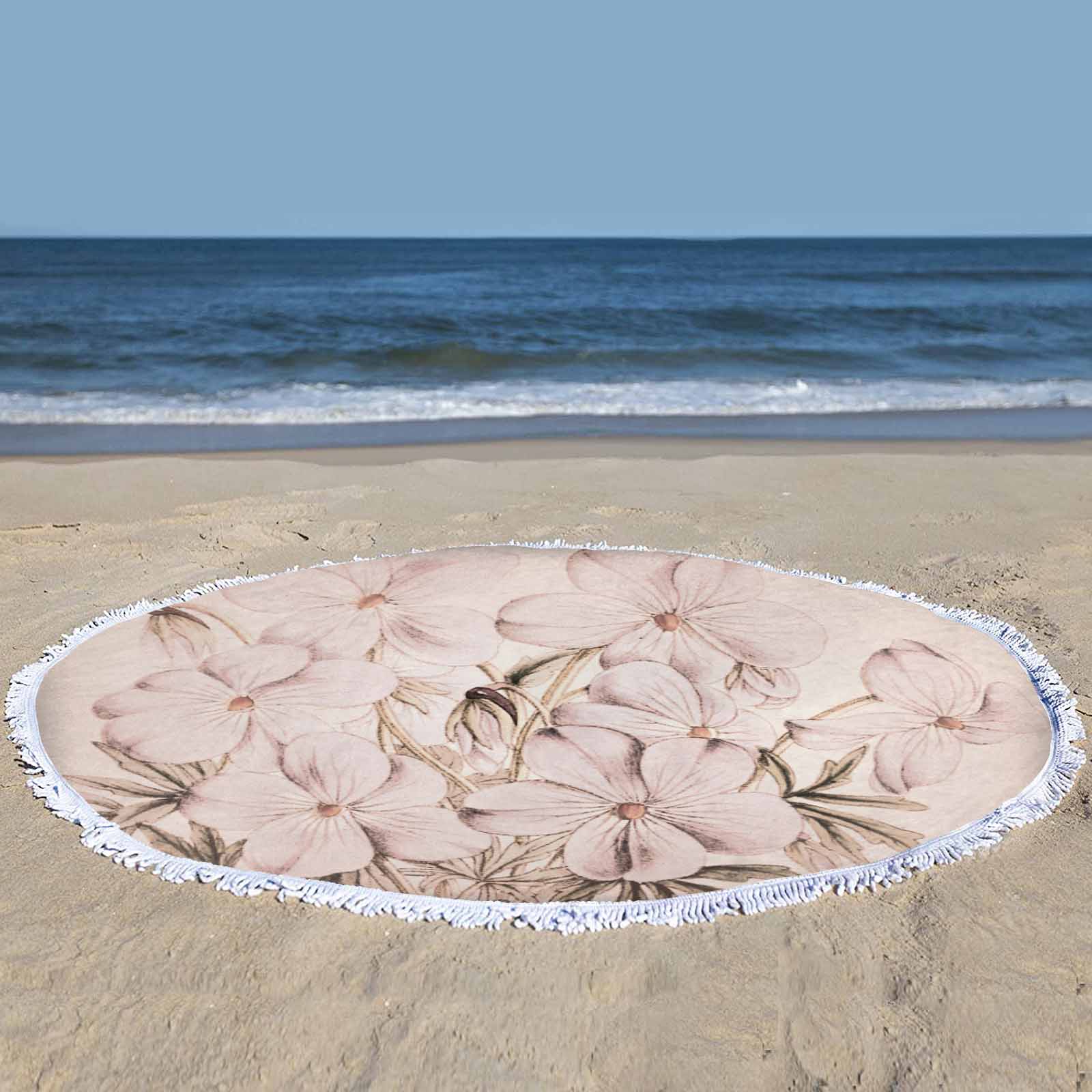 Vintage Floral circular plush beach towel, fringe edges, Design 13x