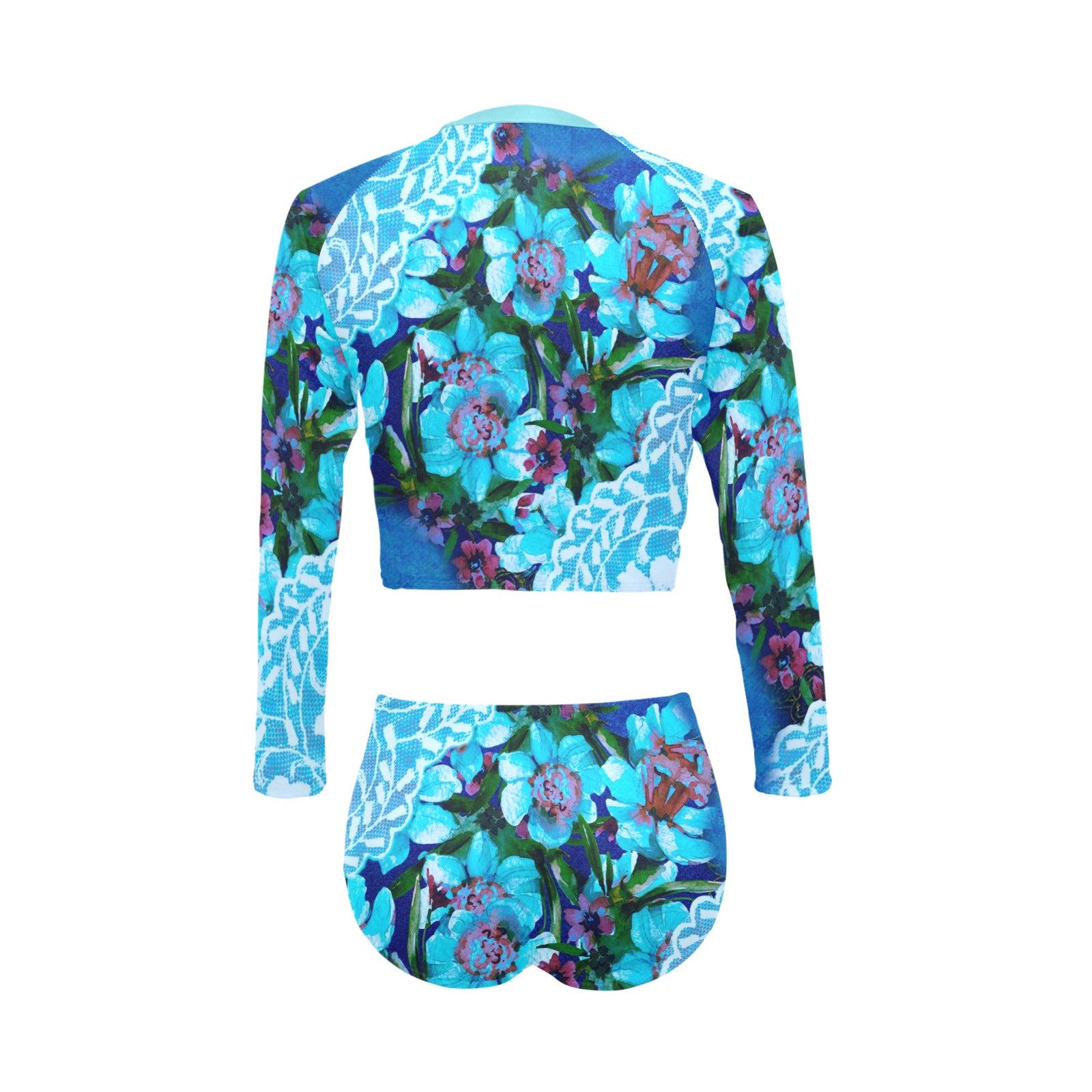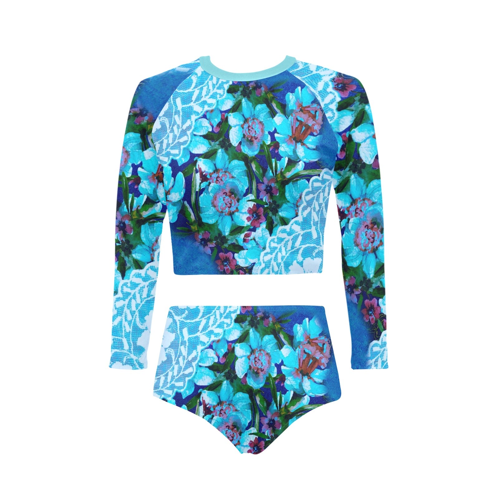 Victorian printed lace, long sleeve 2pc swimsuit, beachwear, design 49 Long Sleeve Bikini Set (Model S27)