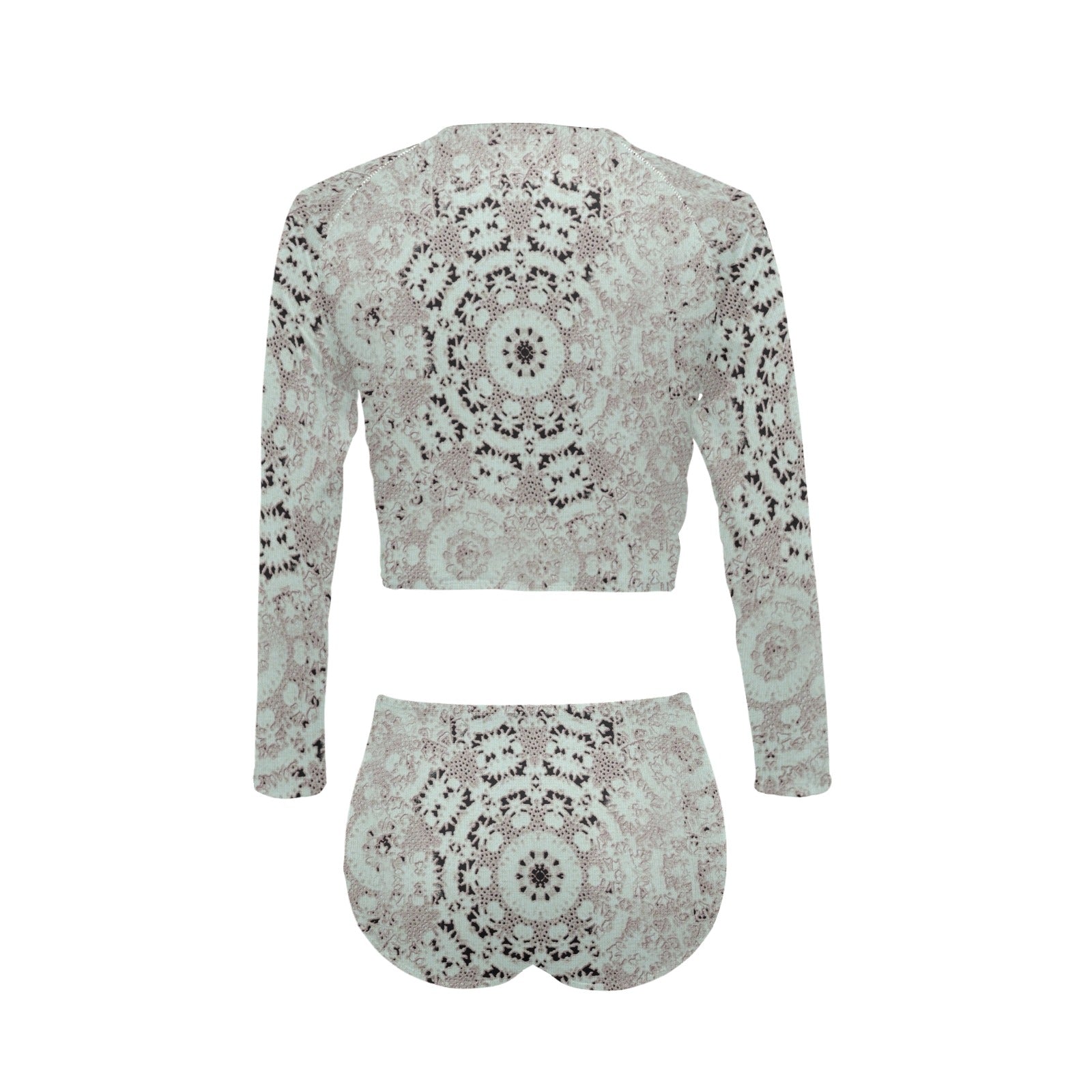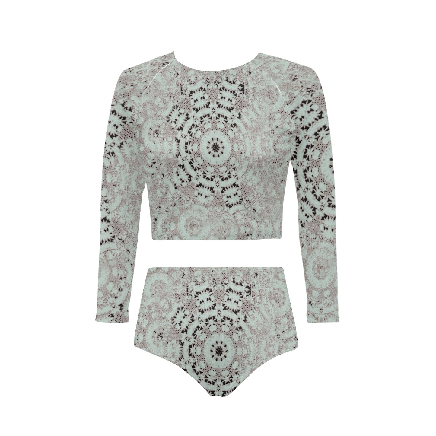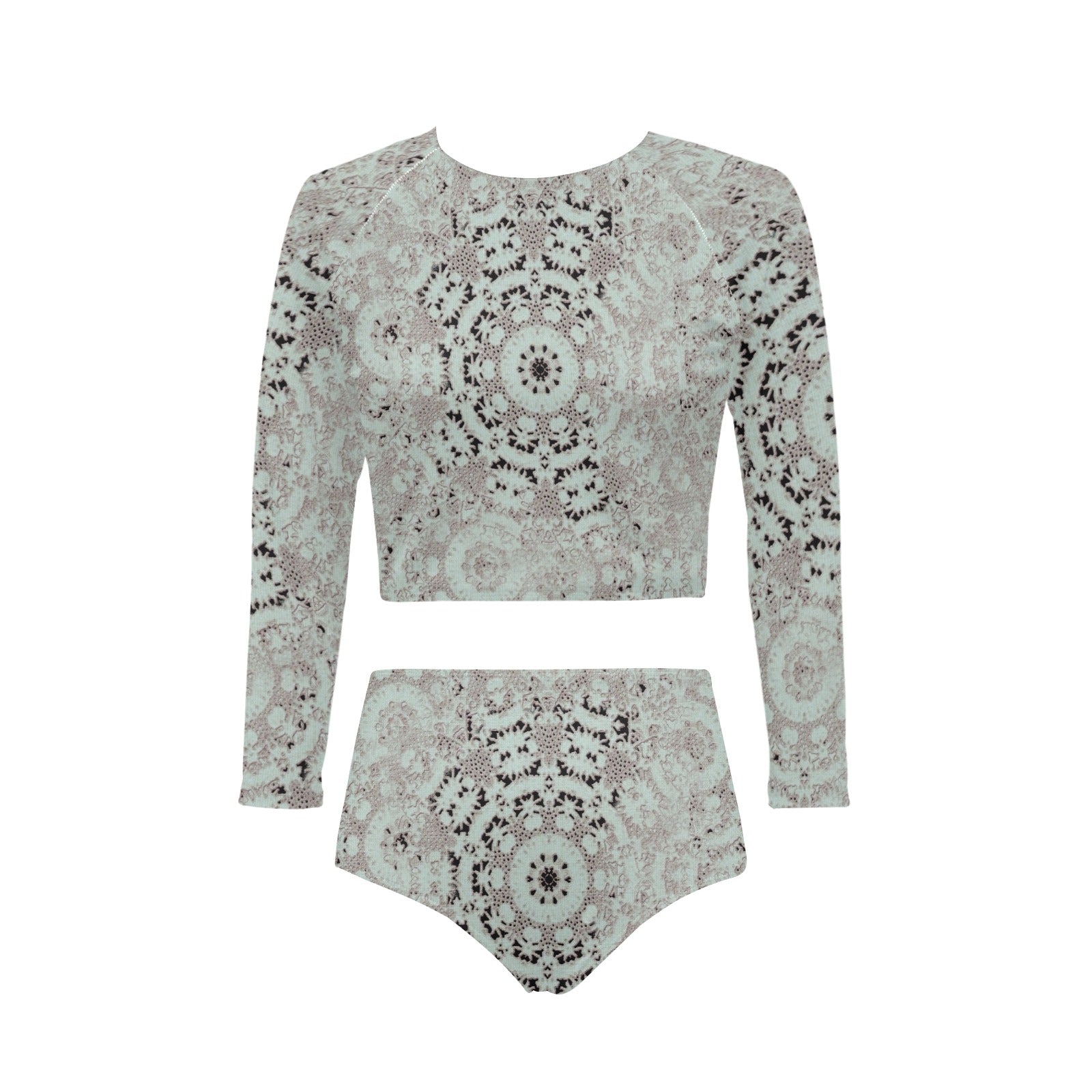 Victorian printed lace, long sleeve 2pc swimsuit, beachwear, design 51 Long Sleeve Bikini Set (Model S27)