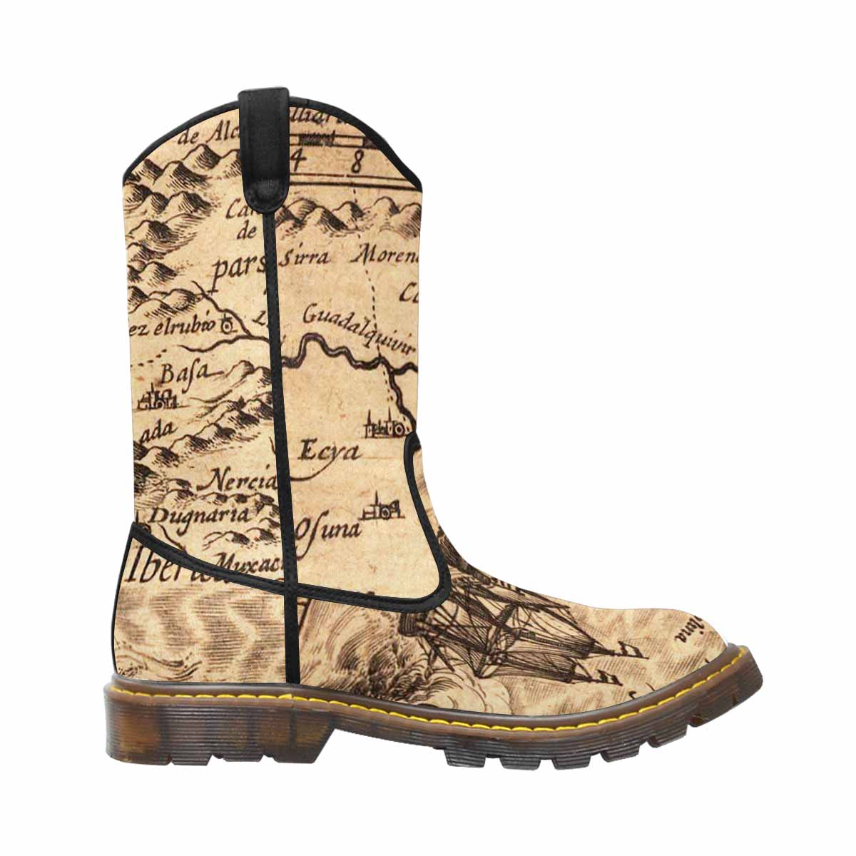Antique Map design womens western lumber boots, Design 25