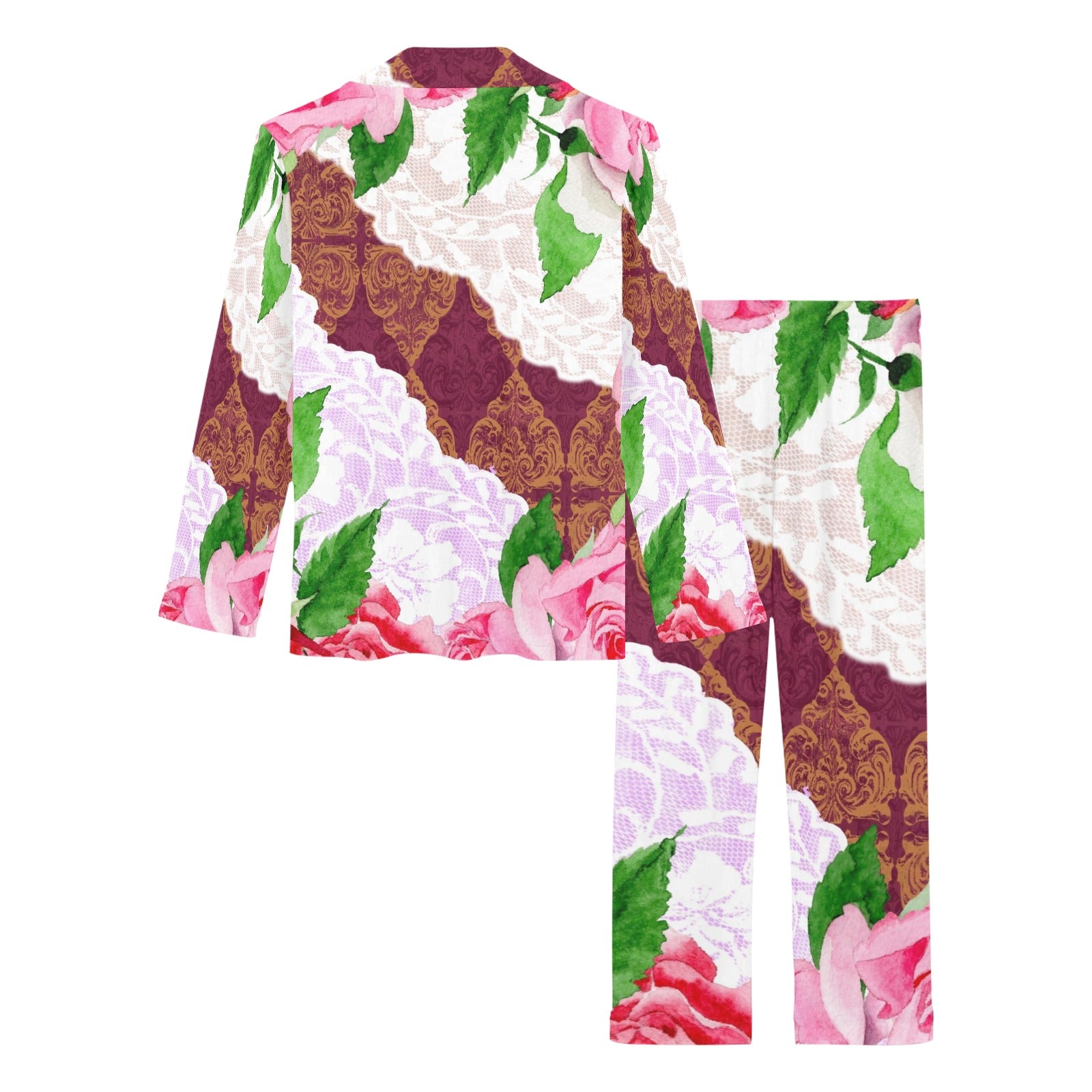 Victorian printed lace pajama set, design 19 Women's Long Pajama Set (Sets 02)