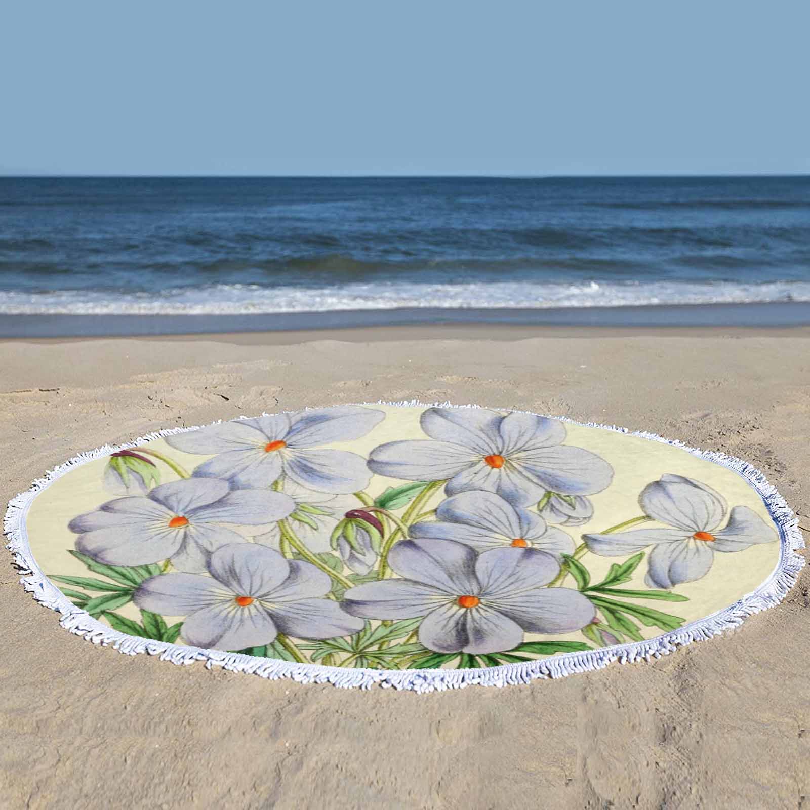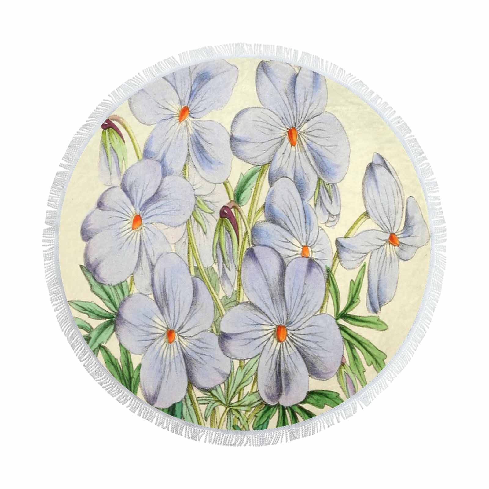 Vintage Floral circular plush beach towel, fringe edges, Design 13