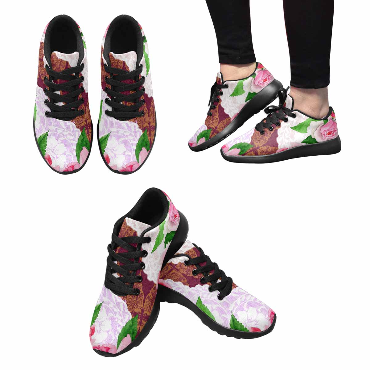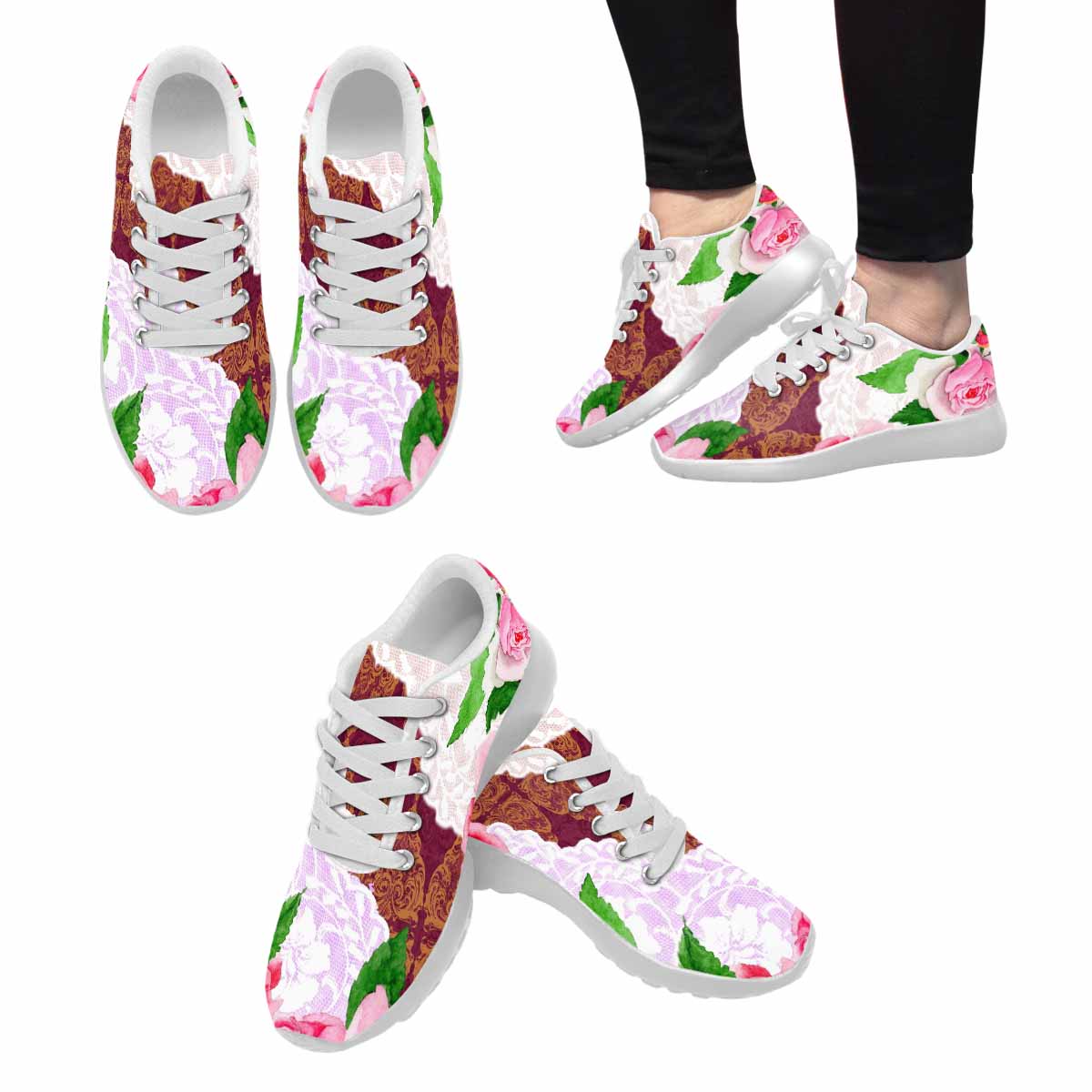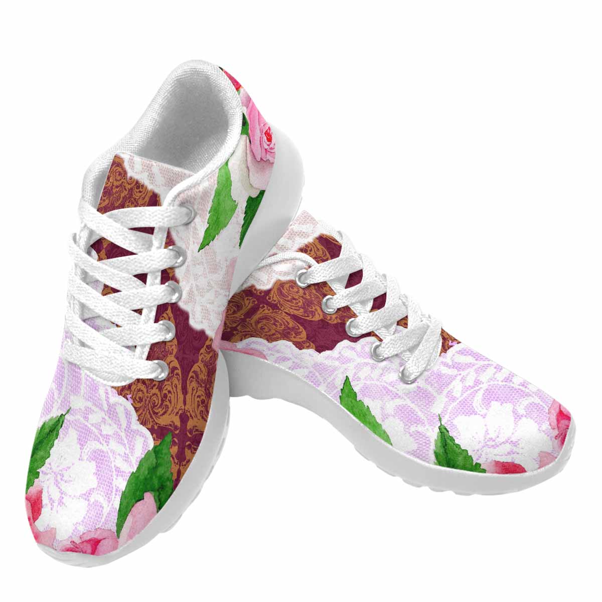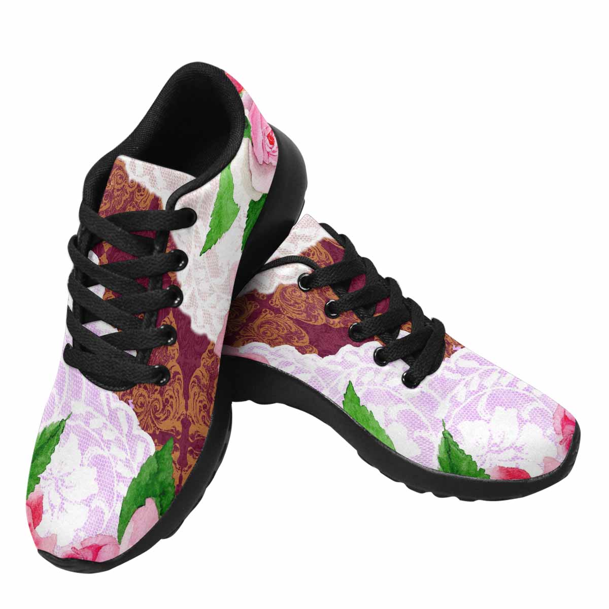 Victorian lace print, womens cute casual or running sneakers, design 19