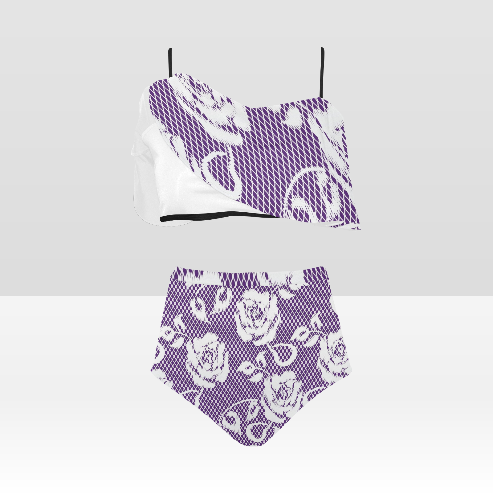 Flounce & Ruffle Bikini swimwear, Printed Victorian lace, Design 18 High Waisted Ruffle Bikini Set-A/B (Model SO3)