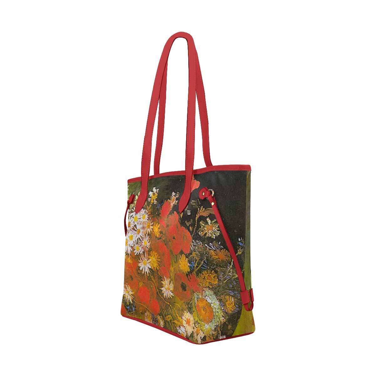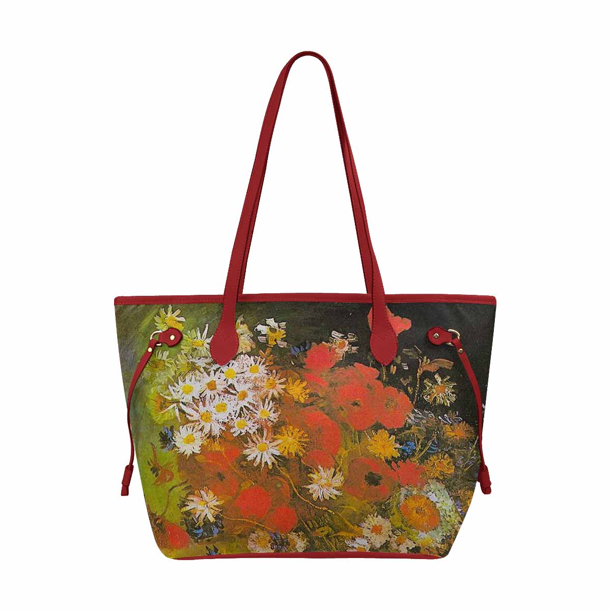 Vintage Floral Handbag, Classic Handbag, Mod 1695361 Design 60, RED TRIM