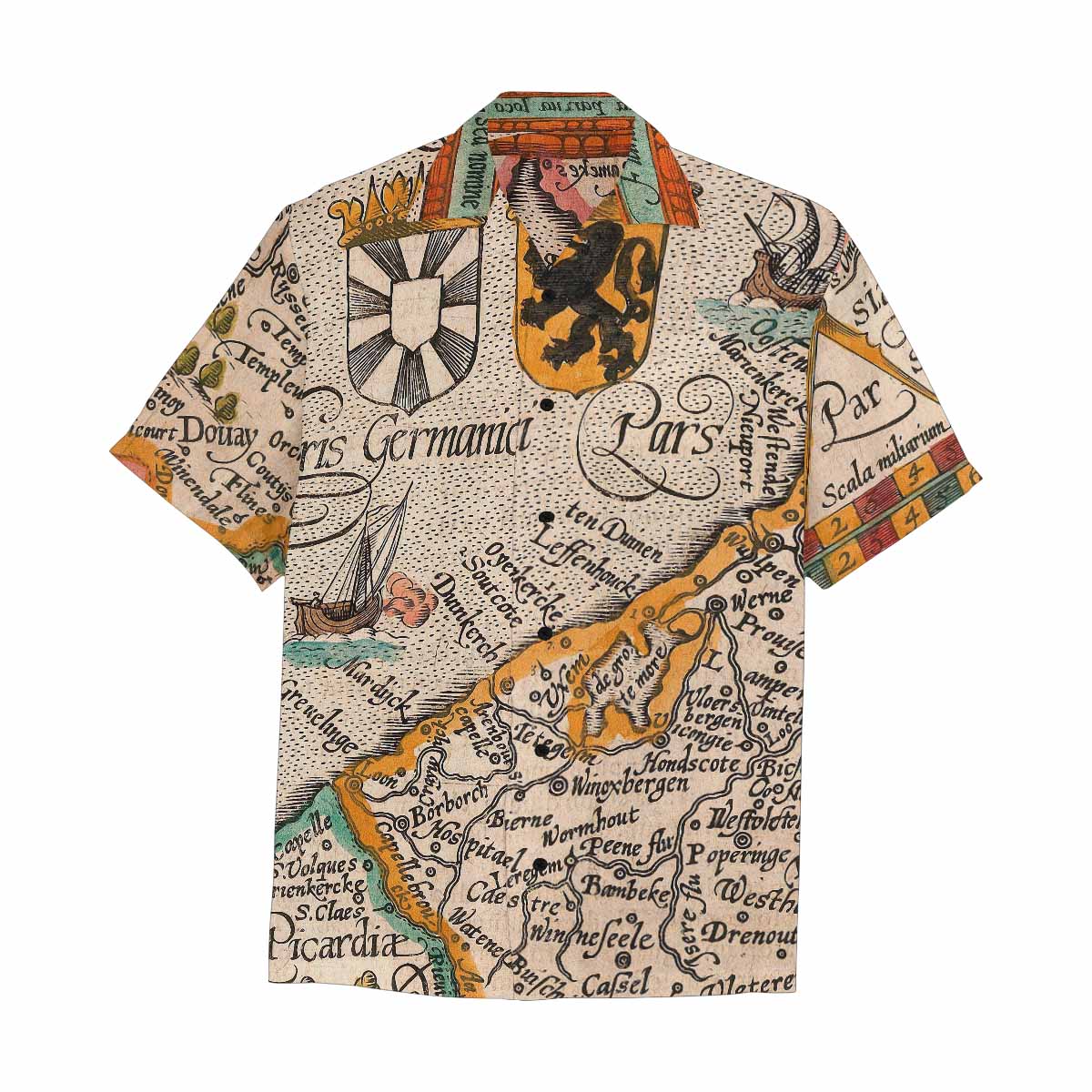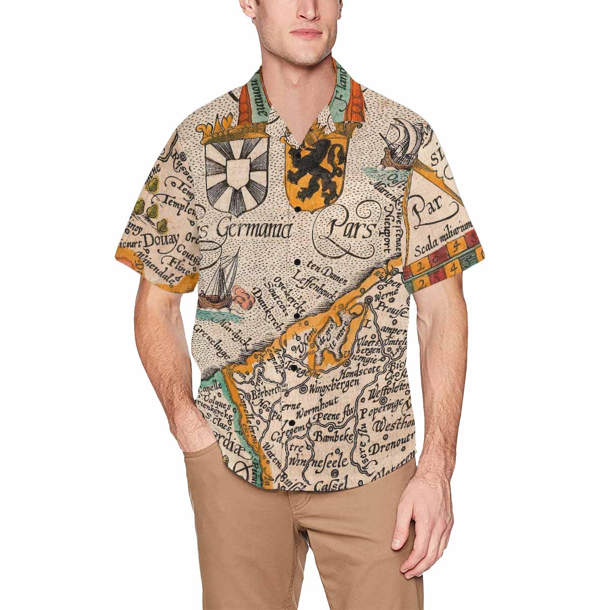 Antique Map design Hawaiian mens shirt, Design 12
