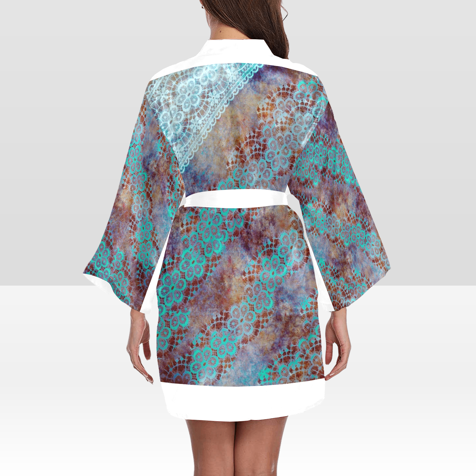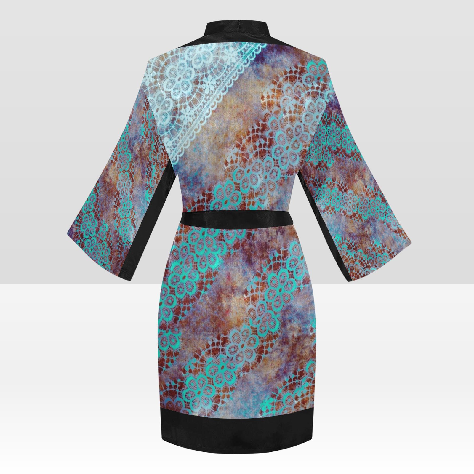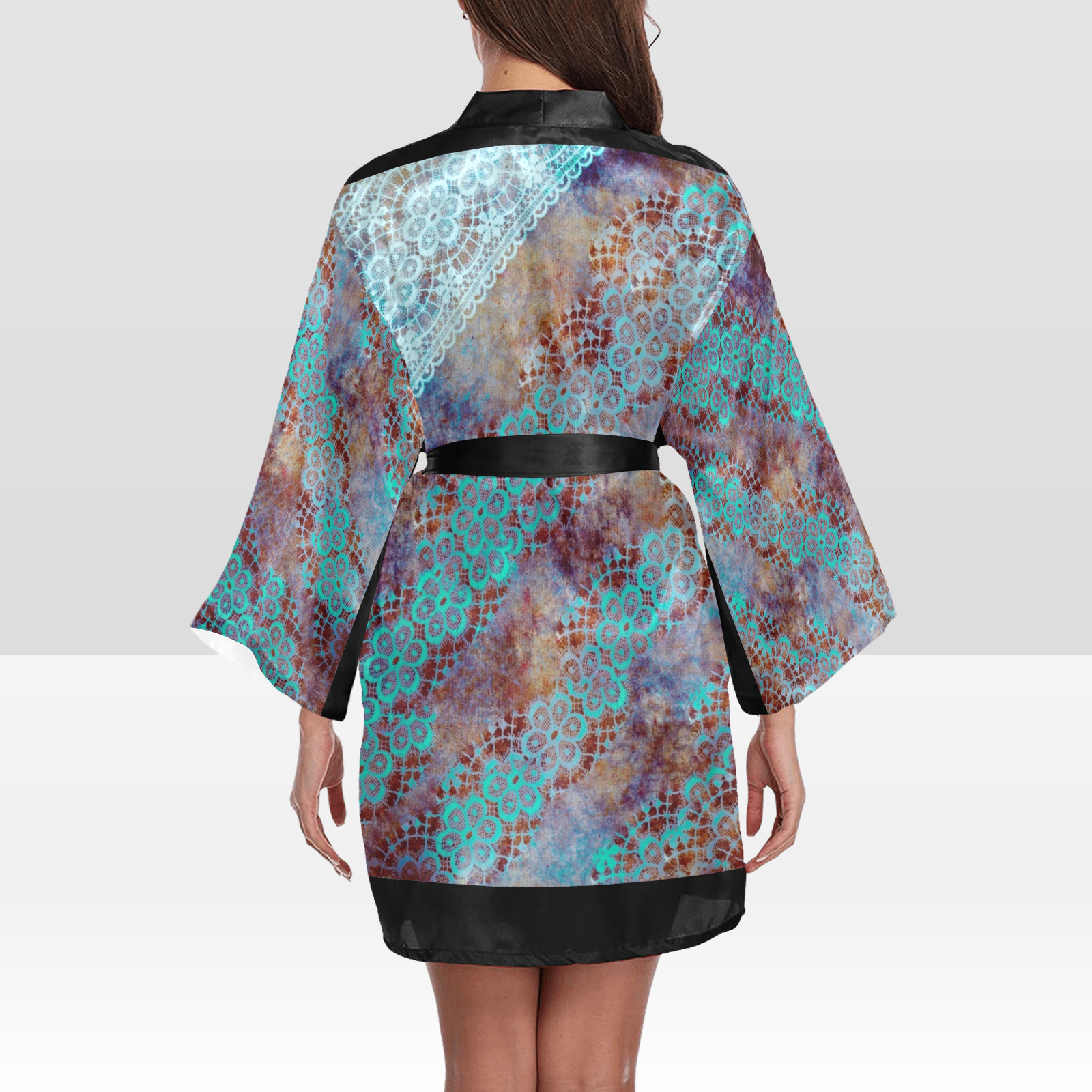 Victorian Lace Kimono Robe, Black or White Trim, Sizes XS to 2XL, Design 37