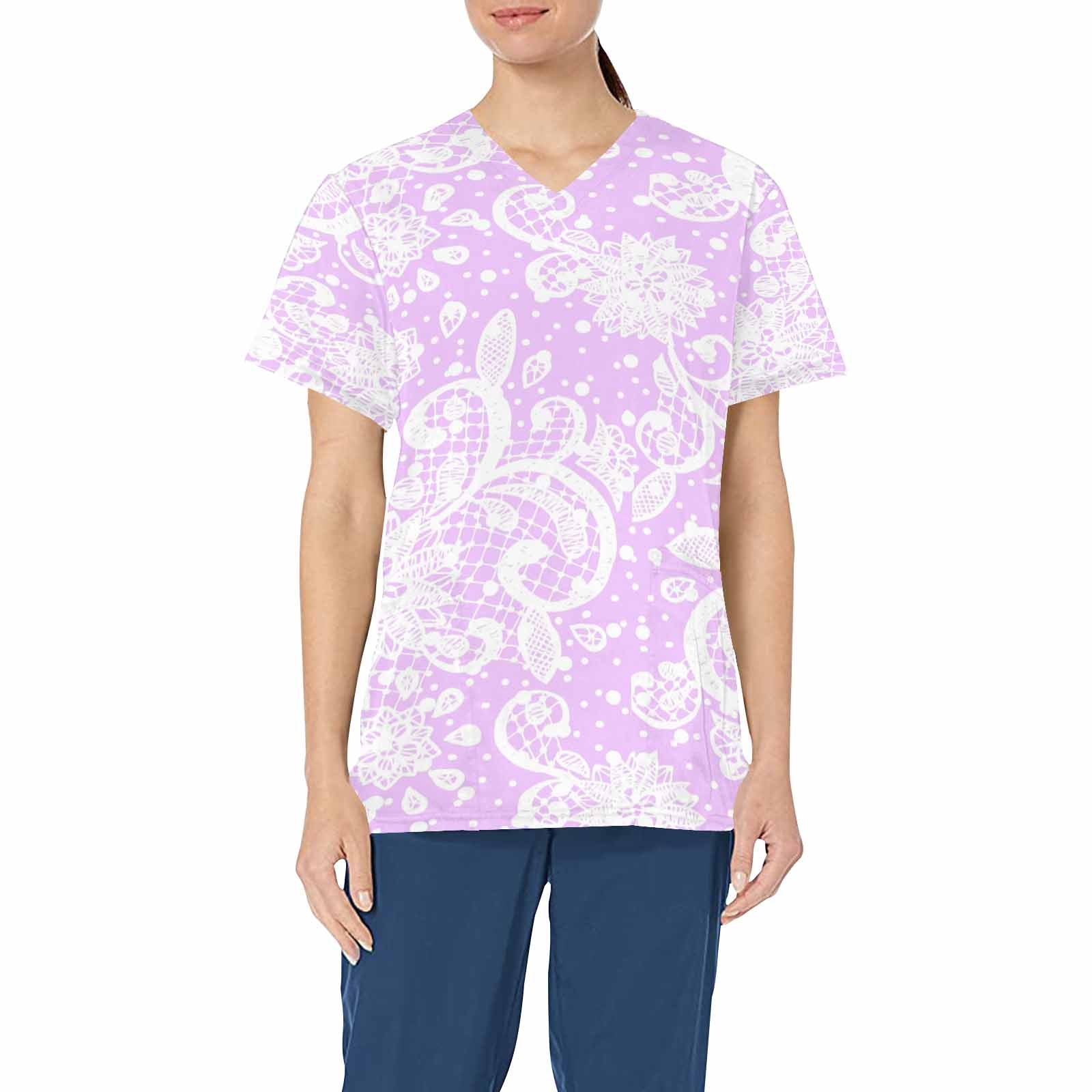 Victorian lace print professional scrubs, nurses scrub, unisex, design 06