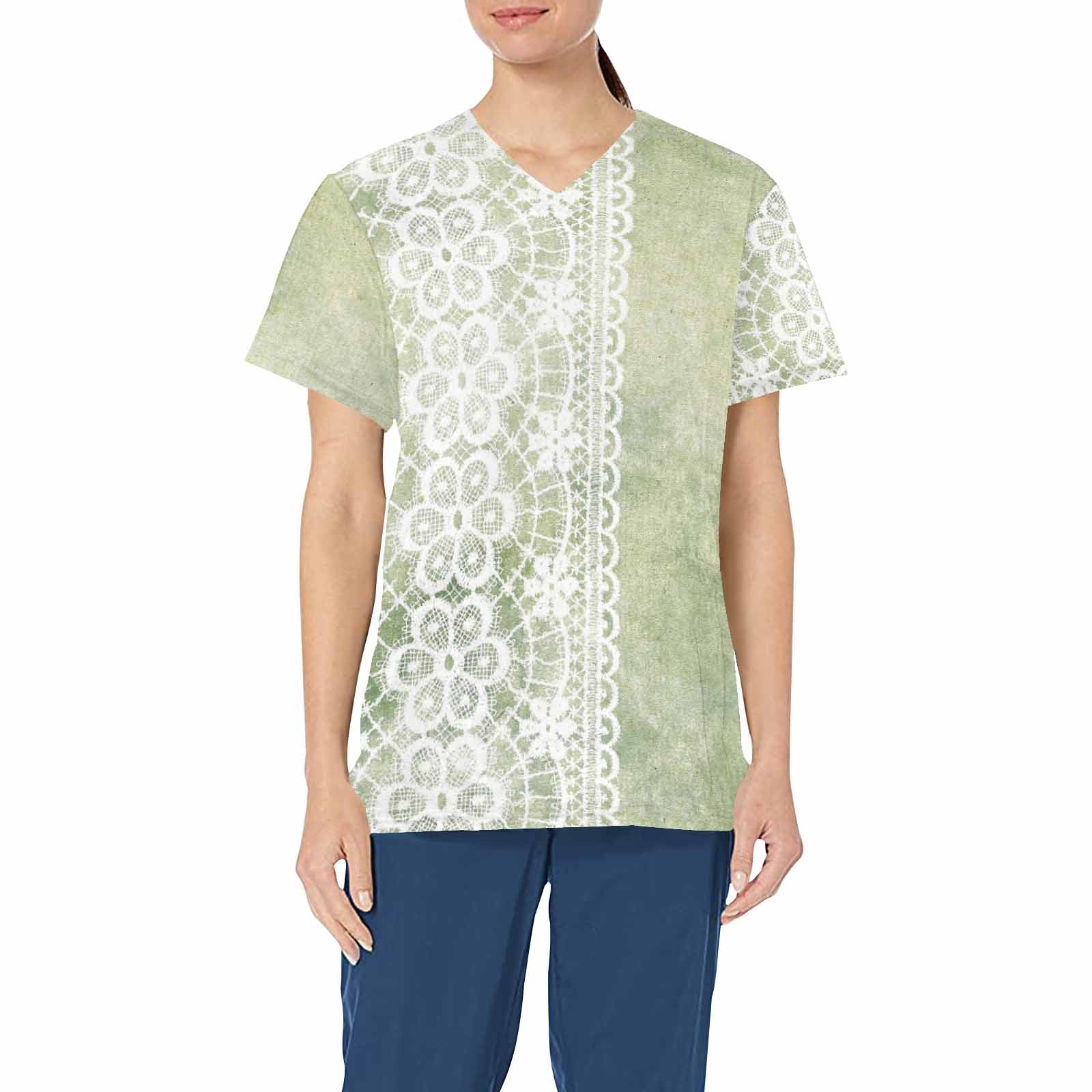 Victorian lace print professional scrubs, nurses scrub, unisex, design 42