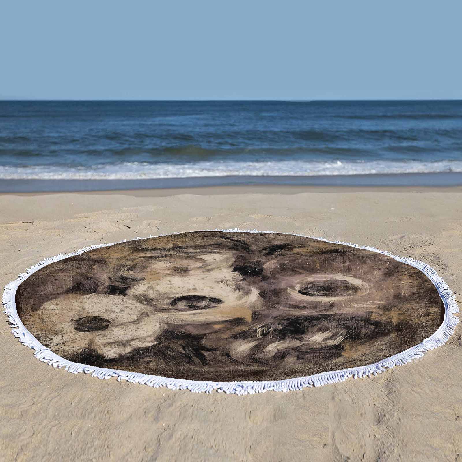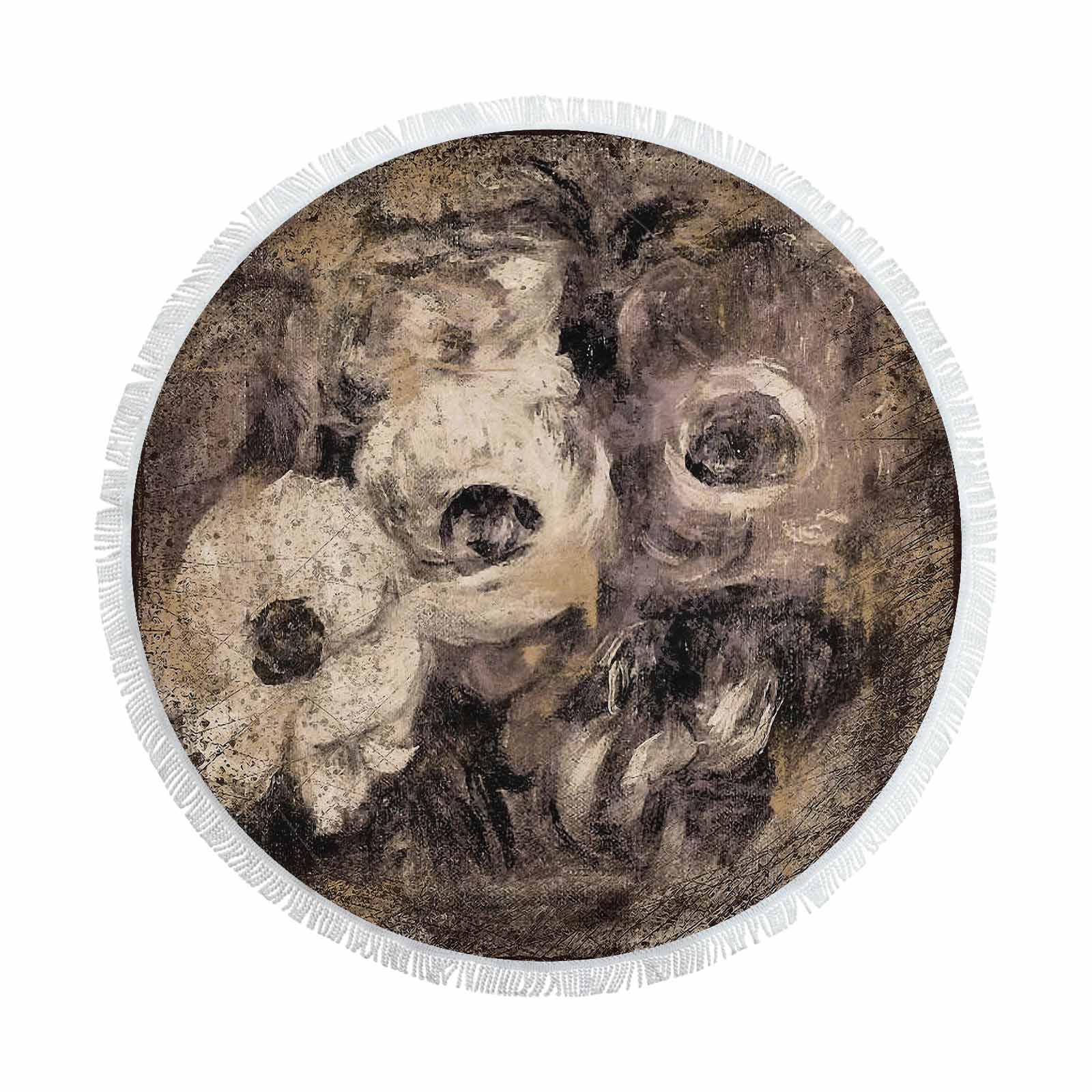 Vintage Floral circular plush beach towel, fringe edges, Design 16