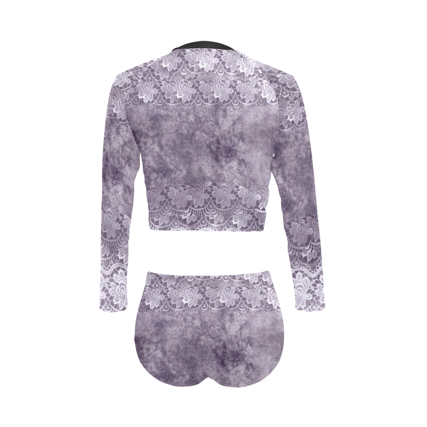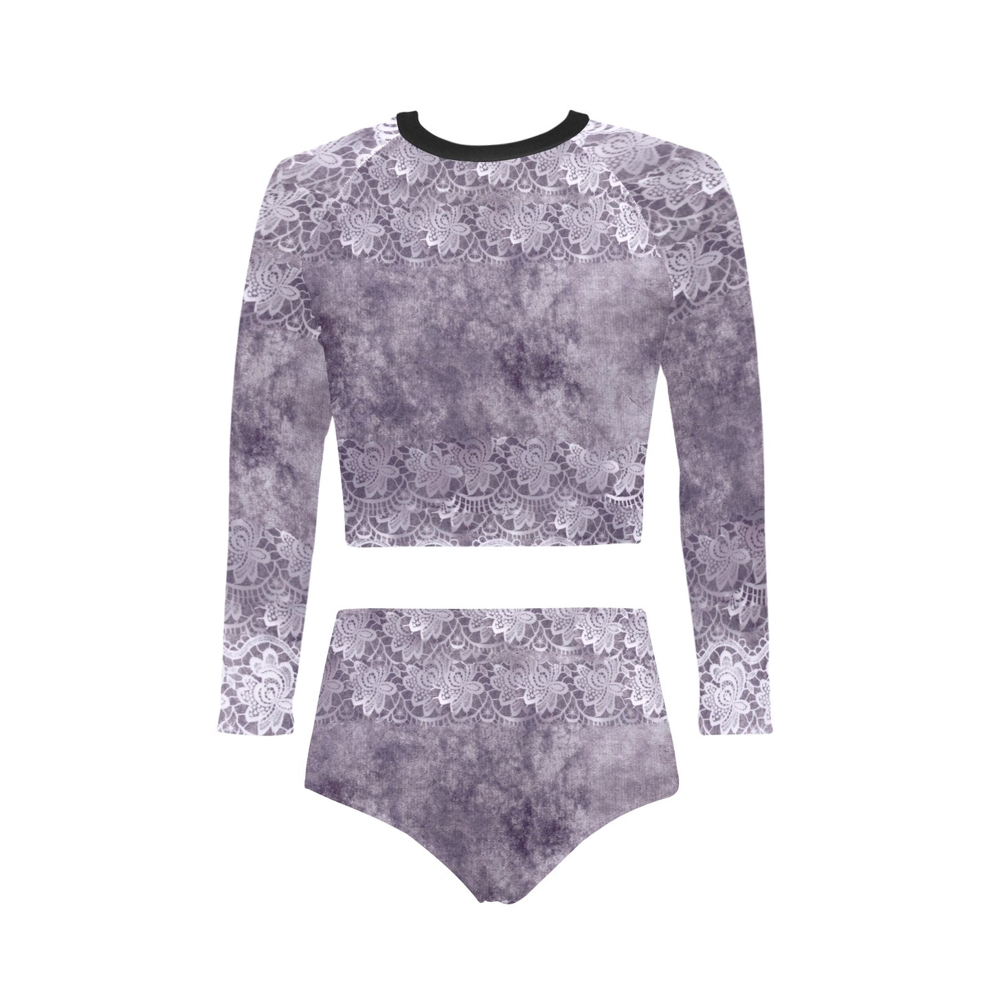 Victorian printed lace, long sleeve 2pc swimsuit, beachwear, design 39 Long Sleeve Bikini Set (Model S27)