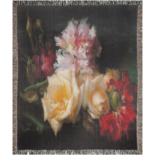 100% cotton Vintage Floral design woven blanket, 50 x 60 or 60 x 80in, Design 25