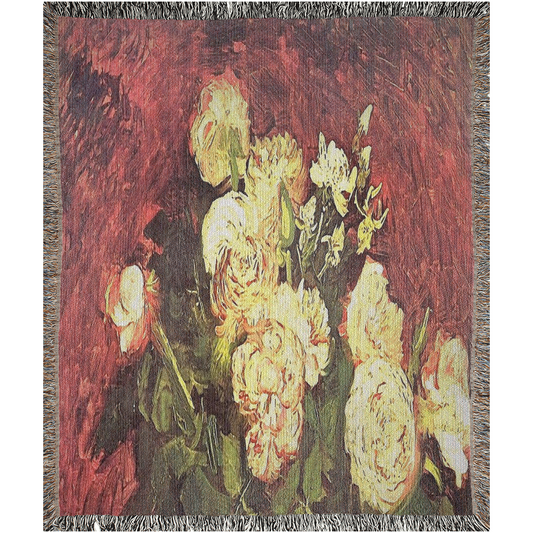 100% cotton Vintage Floral design woven blanket, 50 x 60 or 60 x 80in, Design 27