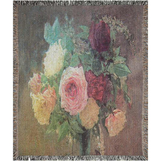 100% cotton Vintage Floral design woven blanket, 50 x 60 or 60 x 80in, Design 15