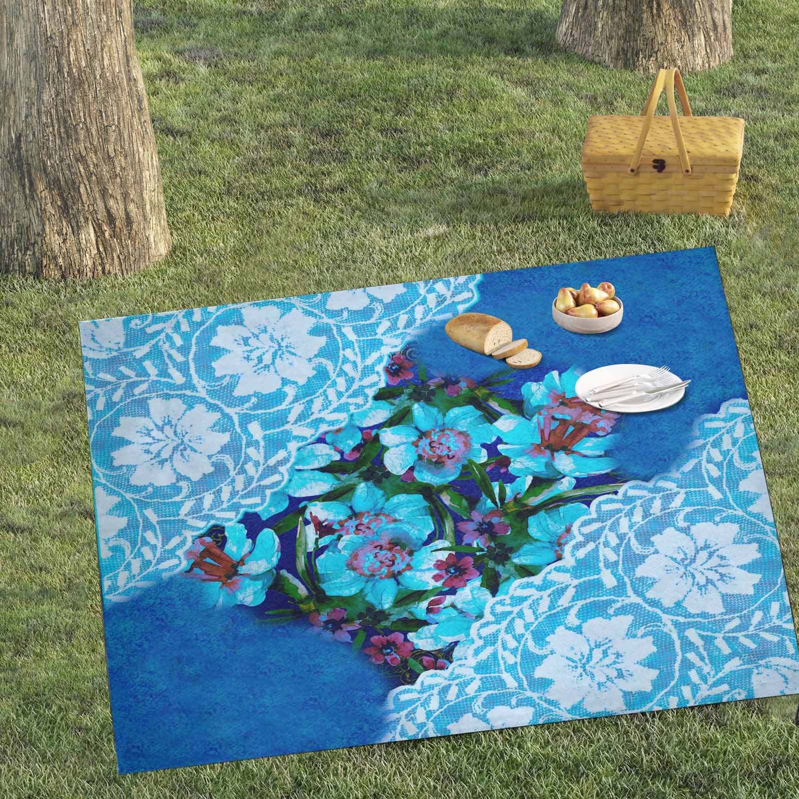 Victorian lace print waterproof picnic mat, 69 x 55in, design 49