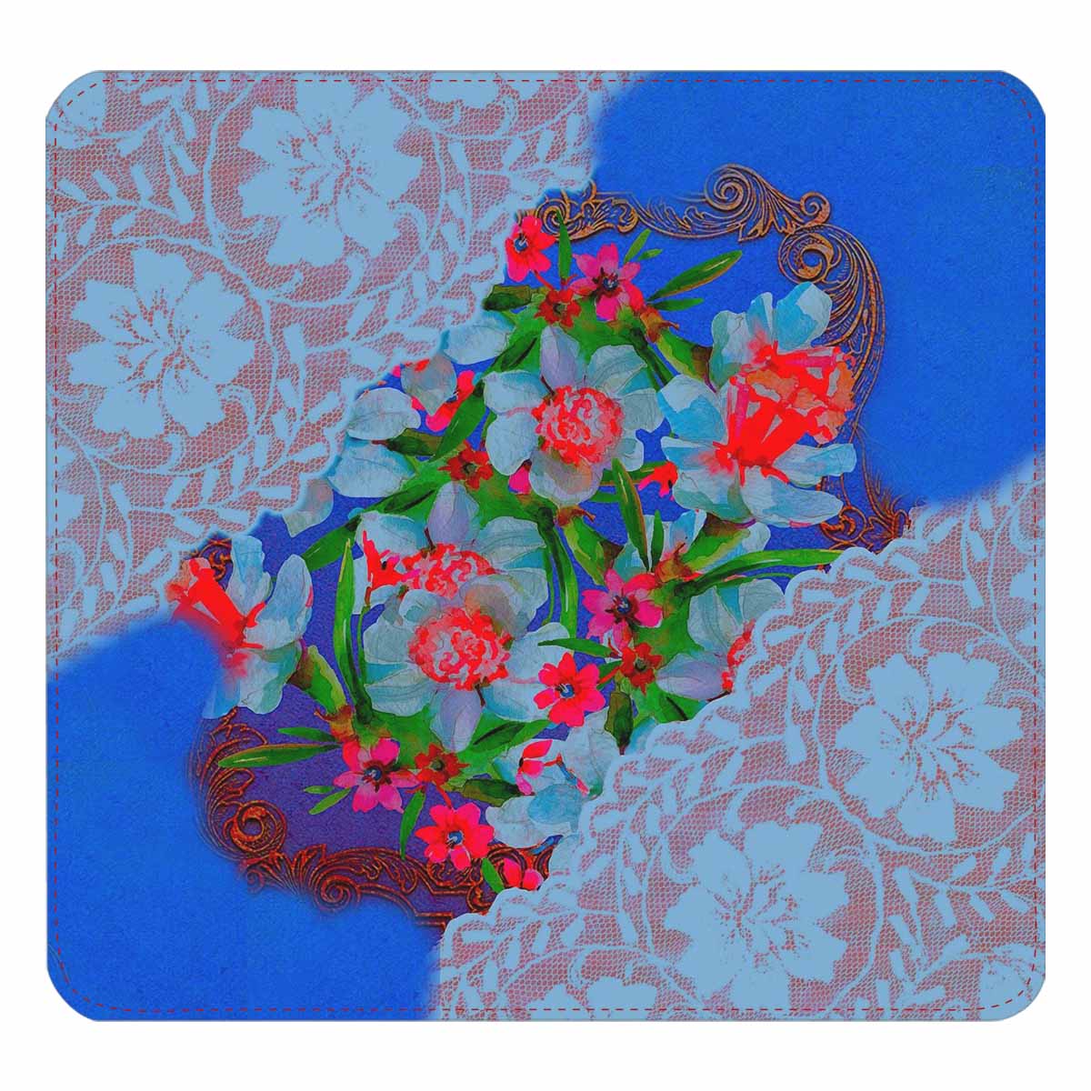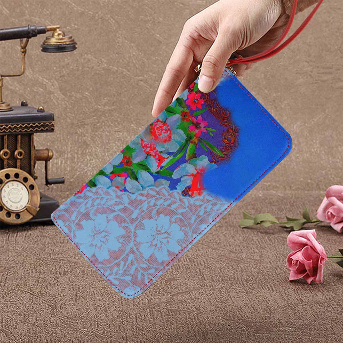 Victorian lace print womens wallet, clutch purse, red trim, design 46