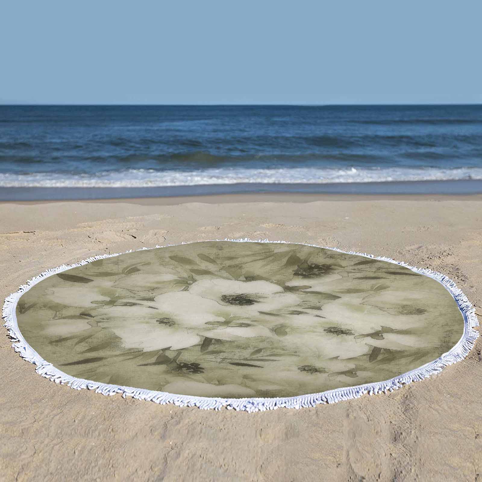 Vintage Floral circular plush beach towel, fringe edges, Design 03x