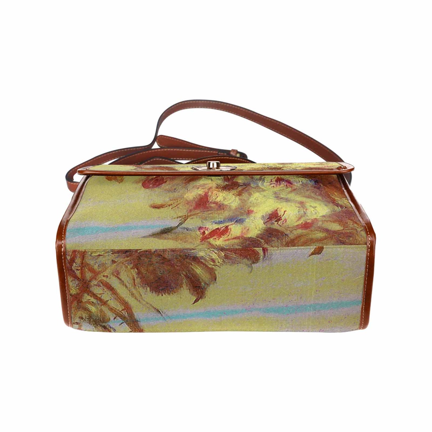 - The shoulder strap is brown.