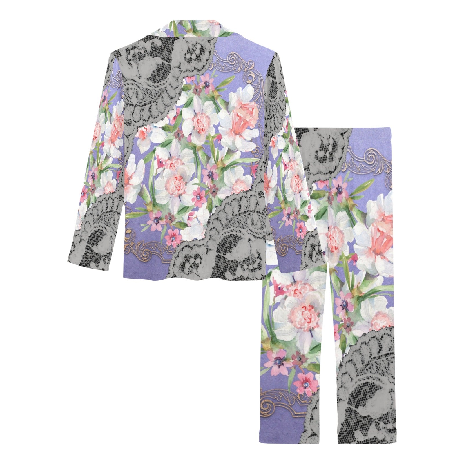Victorian printed lace pajama set, design 45 Women's Long Pajama Set (Sets 02)