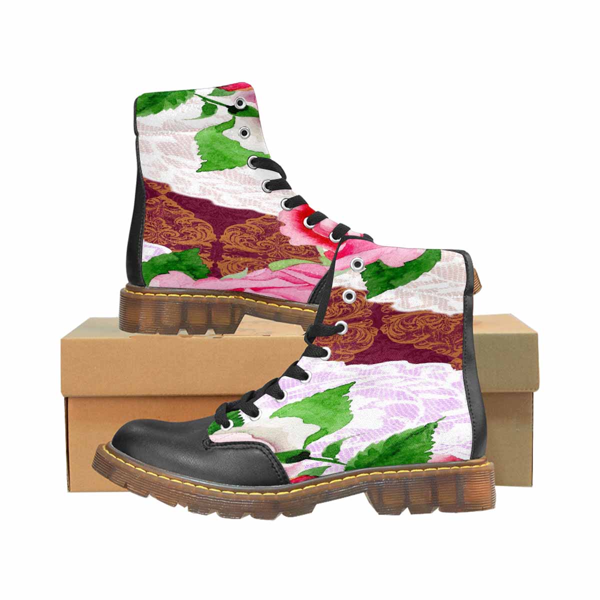 Victorian lace print, cute but tough, Winter walk about boots, design 19
