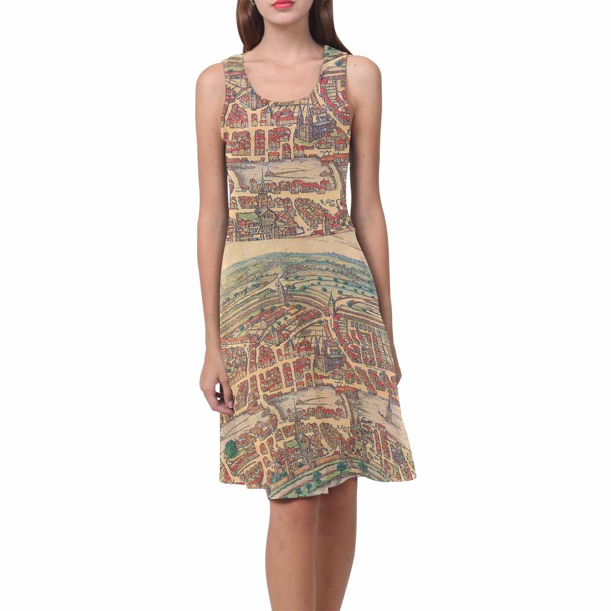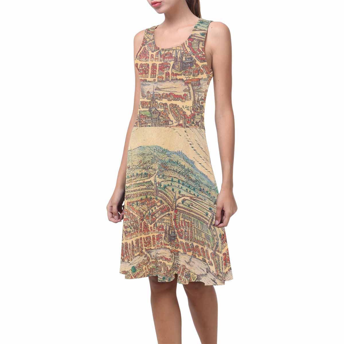 Antique Map casual summer dress, MODEL 09534, design 17