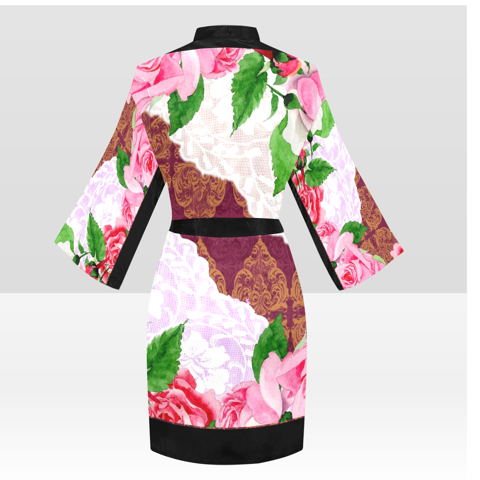 Victorian Lace Kimono Robe, Black or White Trim, Sizes XS to 2XL, Design 19