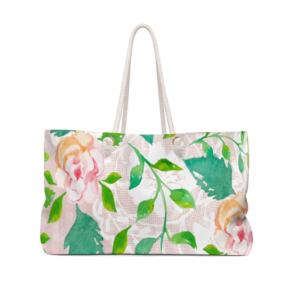 Our oversized all purpose casual yet elegant Weekender Tote is perfect for your weekend at the beach, strolling along gardens or in town doing whatever.